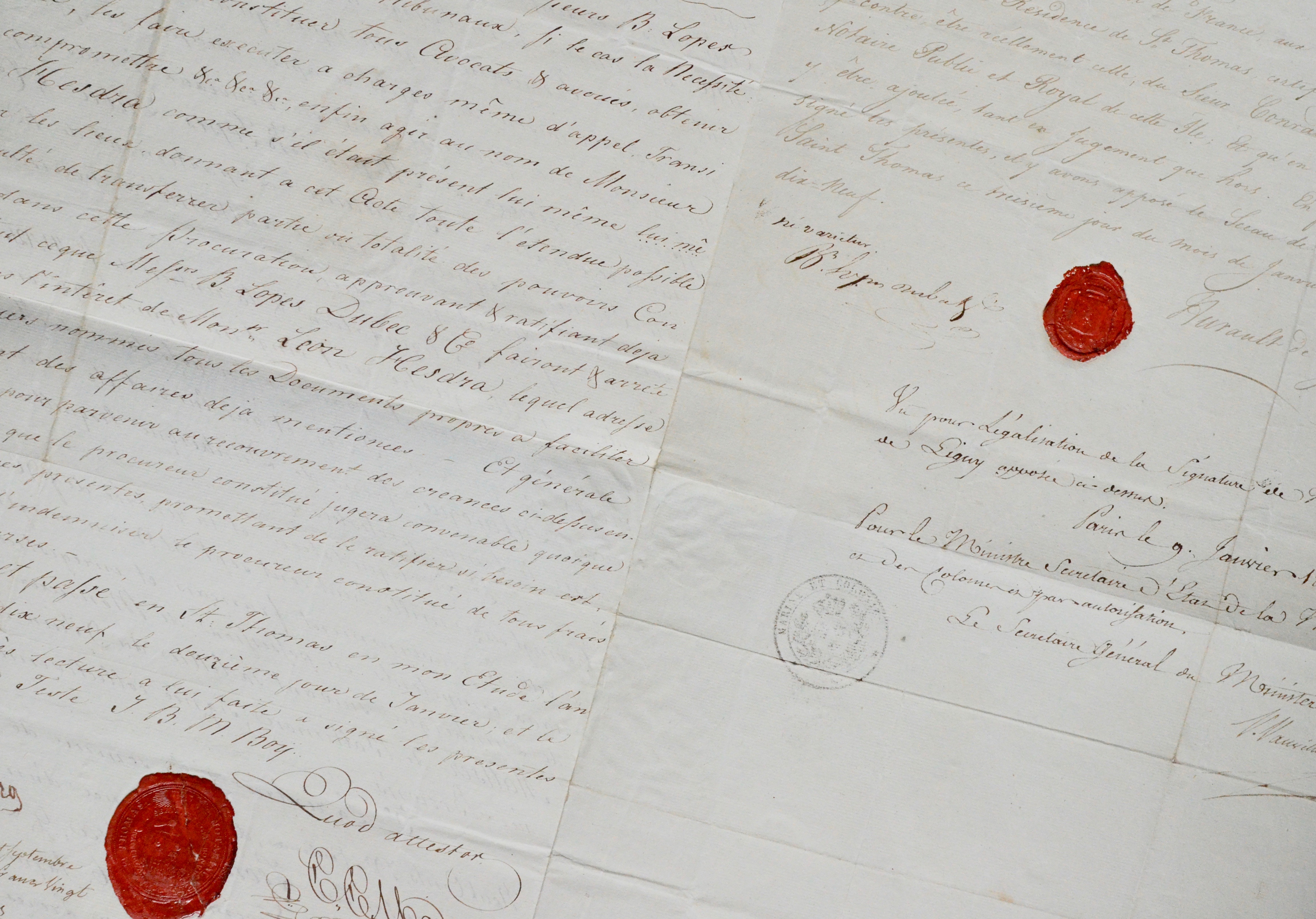 Document sur la liquidation des affaires de M. Léon Hesdra à l'île de Saint-Thomas, qui annule les précédentes procurations pour les donner à MM. Lopes, Dubec & Cie, négociants à Bordeaux.