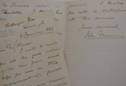 John Murray souhaite la bonne année à Louis Olivier, l'informe de son installation en Ecosse, lui donne son adresse et espère le voir lors de son prochain passage dans ce pays. "I continue to receive your Revue [Revue générale des sciences pures et appliquées, journal fondé par Louis Olivier en 1889] which I find most excellent. I don't think I have paid any subscription [...]". Il lui adresse sa contribution et le remercie pour son envoi gracieux pour l'année 1892. "I have read with much pleasure M. Shonlet (?) article on plankton. I think his views most sensible and just. I am now very busy with my last Challenger volume : but by the close of this year I will have finished the Challenger Official Reports and after that I will be glad to write an article for your journal. I hope you will be satisfied with this promise". [Après la mort de Wyville Thompson, Murray qui se chargea de la publication des comptes rendus de l'expédition du Challenger, soit cinquante volumes au total, jusqu'en 1896].