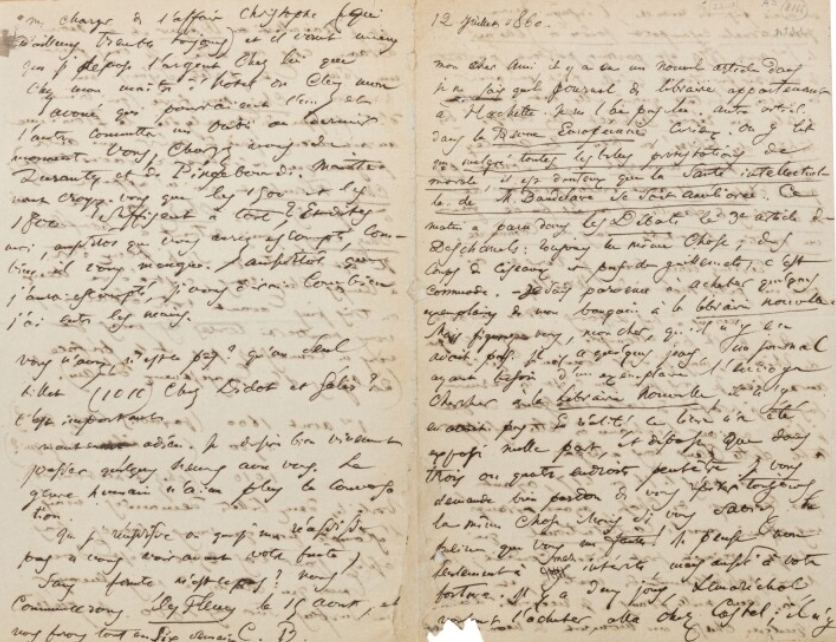 Longue lettre de Baudelaire à Poulet-Malassis sur Les Paradis artificiels et Jeanne Duval