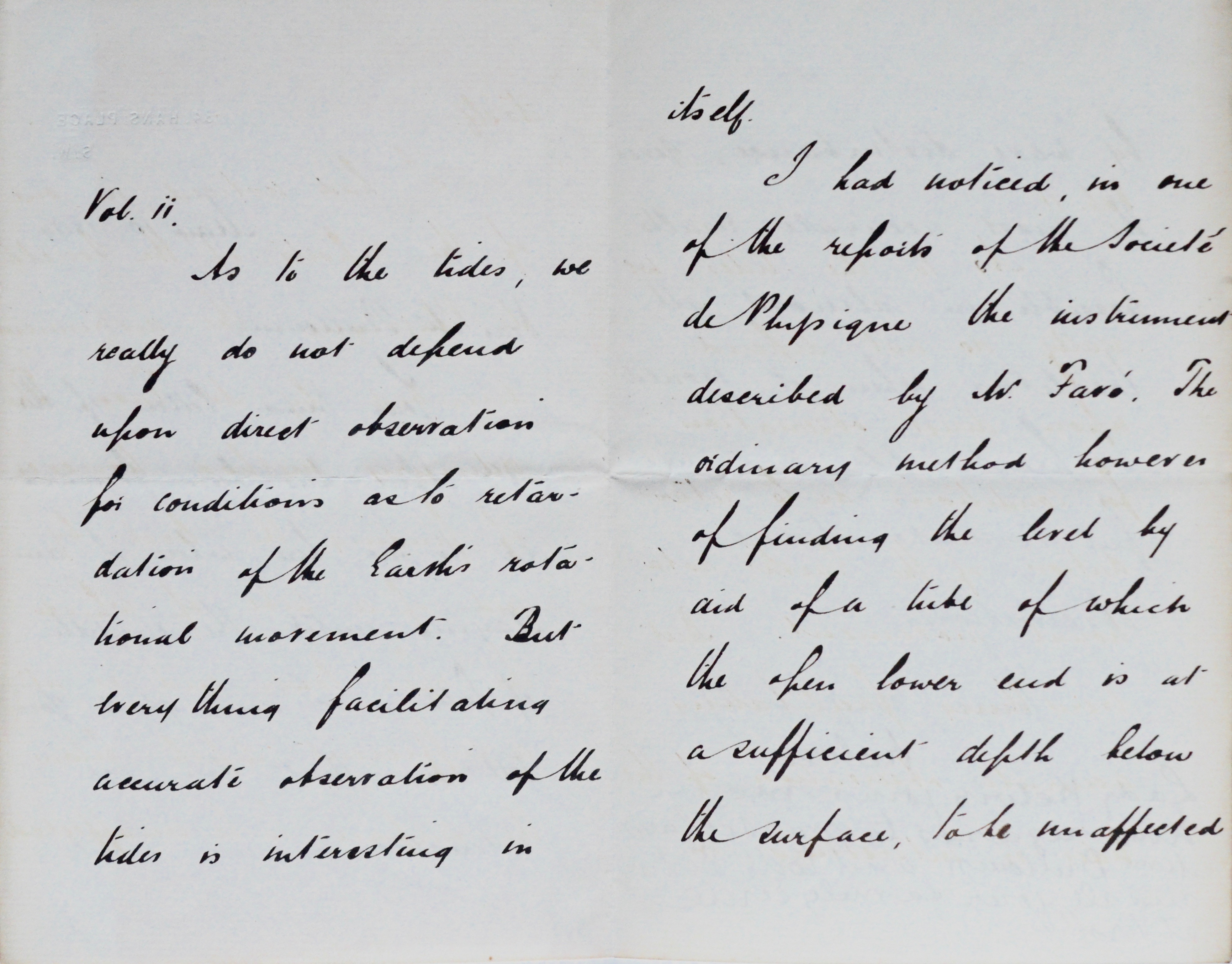 Kelvin évoque la publication toute récente du second volume de ses Cours (1894), il fait part de ses observations sur le mouvement de rotation de la Terre, mentionne la Société de Physique, etc.