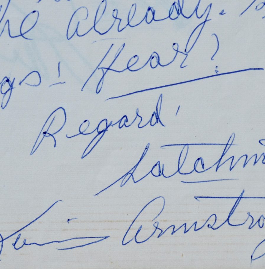 Lettre rédigée au dos d'un programme d'Armstrong : "Lose weight, The Satchmo Way! As copied from the Harpers Bazaar - by Louis Armstrong".