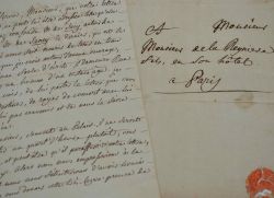 Louis Ussieux (d') (Angoulême, 1744/1805)Dans une première lettre écrite à la troisième personne, Louis d'Ussieux promet de répondre par écrit dès le lendemain et de lui donner tous les détails nécessaires, au sujet du passage chez le censeur avant de publier sa lettre ; ce qu'il fait. "J'ai l'honneur de vous observer, monsieur, que votre lettre au censeur du Journal de Paris ne peut être adressée telle qu'elle est, attendu que vous avez confondu M. de Sacy, auteur de l'Honneur françois, avec M. de Sancy. Ce dernier, qui est le véritable amphitryon et qui nous fait mourir de tems en tems d'inanition, n'est à ce que je crois auteur d'aucun ouvrage, mais bien censeur d'une foule d'écrits. Il demeure rue neuve S. Roch : c'est un homme d'un certain âge. Je vous conseille de le voir, de lui porter la lettre que vous vouliez bien nous destiner, de rayer de concert avec lui ce qui pourroit ne pas lui convenir et de nous la faire passer tout approuvée". Il lui suggère de passer à la sortie du Palais et lui exprime son estime. "Je vous assure, qu'en mon particulier, monsieur, je suis enchanté de l'expression que vous avez employée à la fin de la lettre que vous m'avez fait l'honneur de m'adresser, et que je ne négligerai rien de ce qui pourra me rendre digne des sentiments que vous inspirez si bien vous-même".