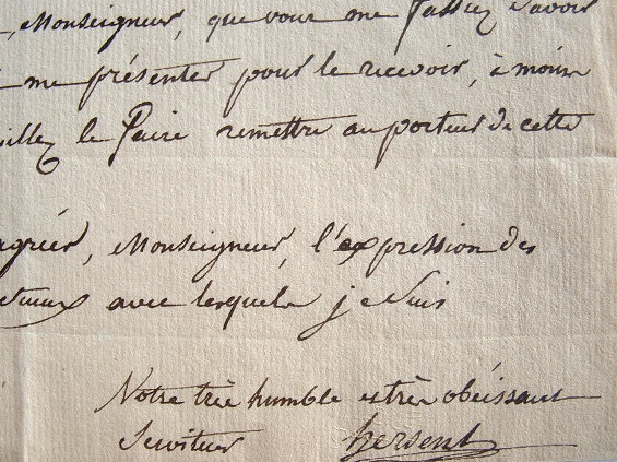 «Vous avez bien voulu me promettre de me confier un petit portrait de S.A.R. Mr le Dauphin pour que je puisse m'en aider dans l'exécution de celui que je suis chargé de peindre pour la ville de Tarascon». Il lui rappelle sa promesse, souhaitant débuter l'exécution de l'oeuvre prochainement.
