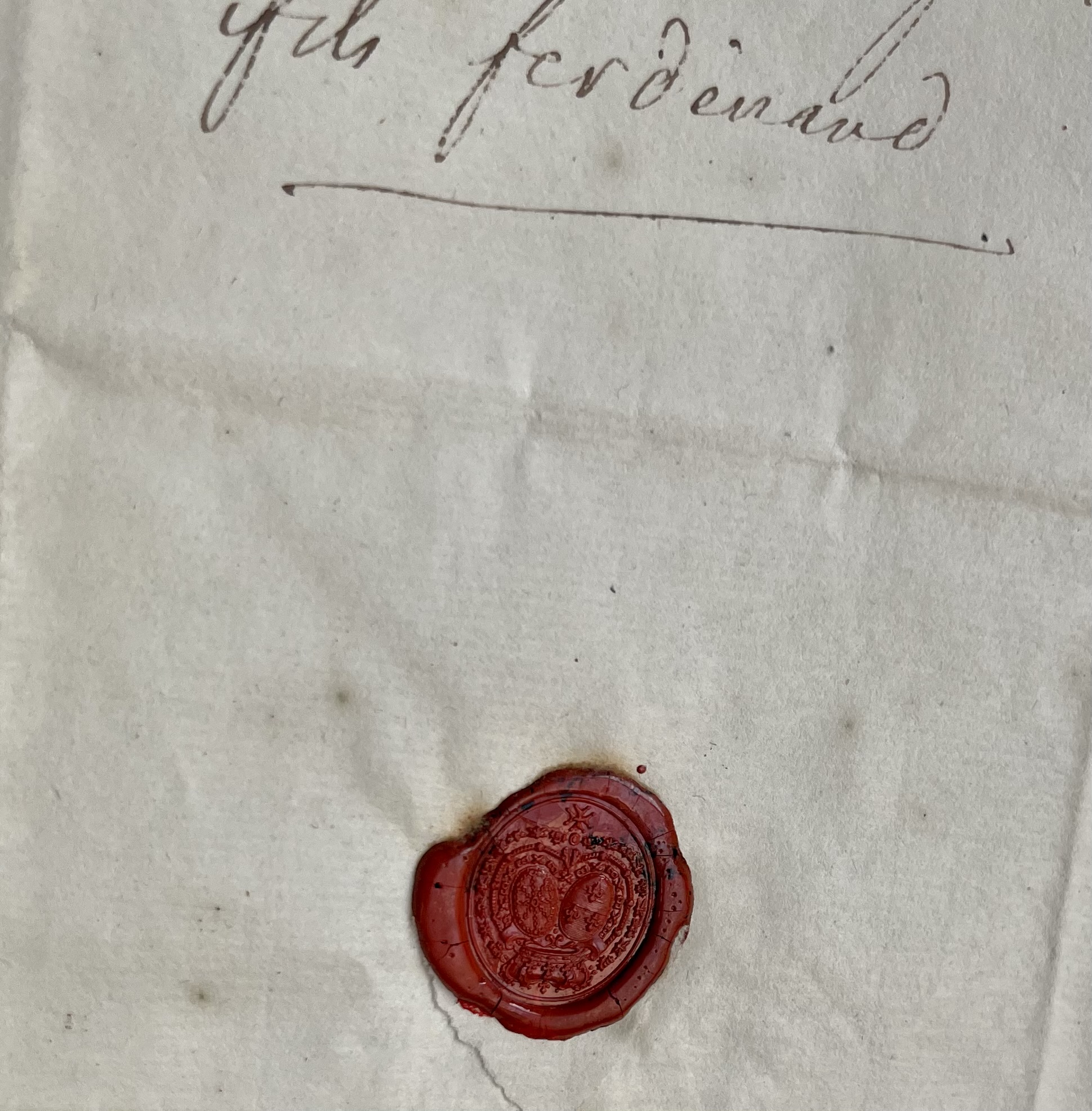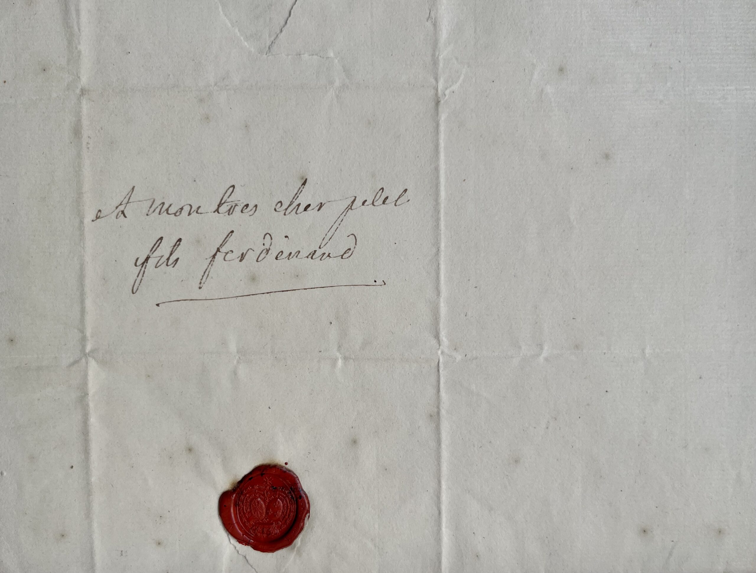 Courrier très partiellement publié dans les "Lettres de Louis XV à son petit-fils l'Infant Ferdinand de Parme", avec erreurs de transcription et oublis (Grasset, 1938, p. 30).