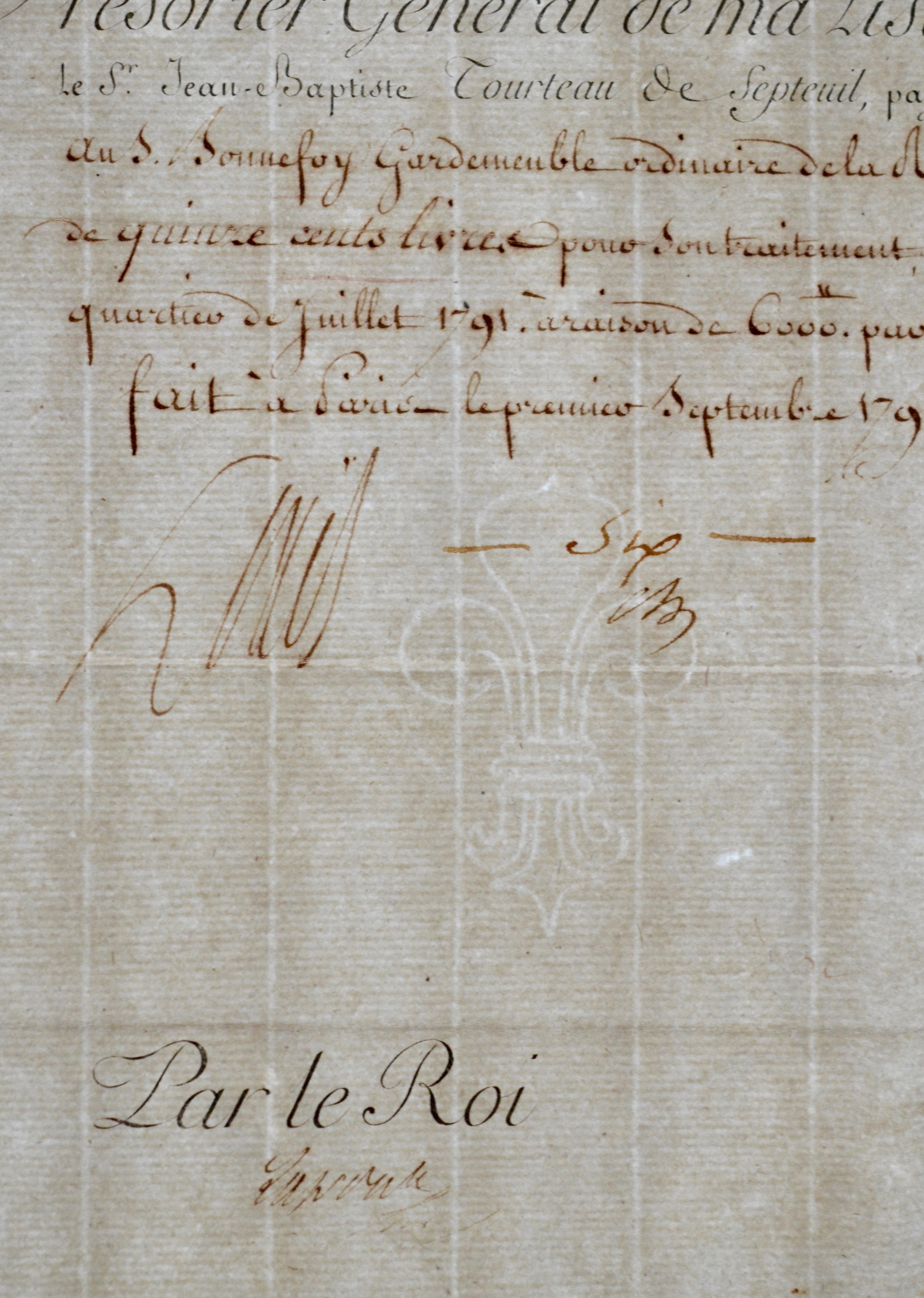 Louis XVI signe un ordre de paiement pour un garde-meuble de Marie-Antoinette
