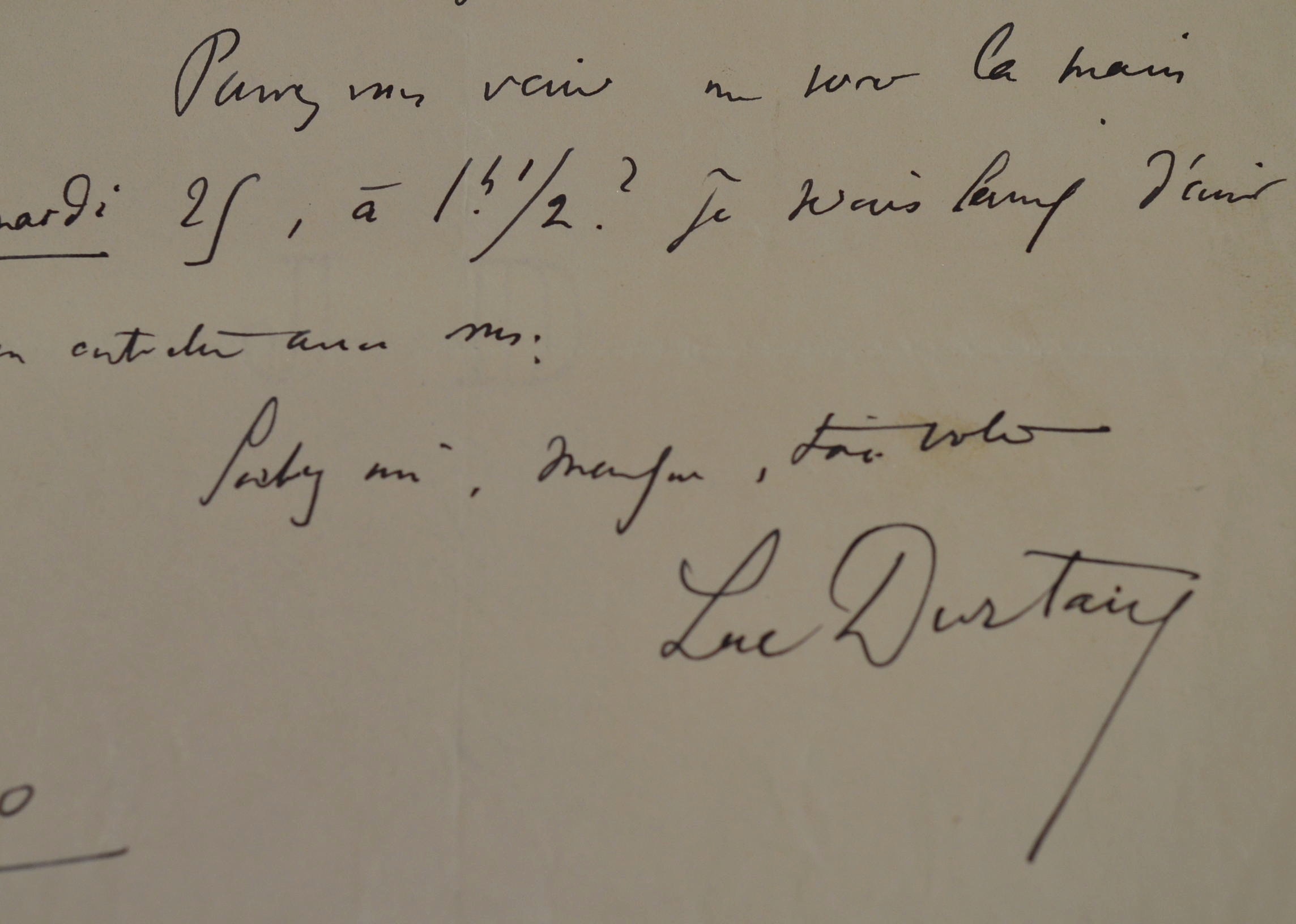 Luc Durtain vient de lire l'interview de son ami André Siegfried faite par son correspondant. "Pouvez-vous venir me serrer la main mardi 25, à 1h1/2? Je serais heureux d'avoir un entretien avec vous".
