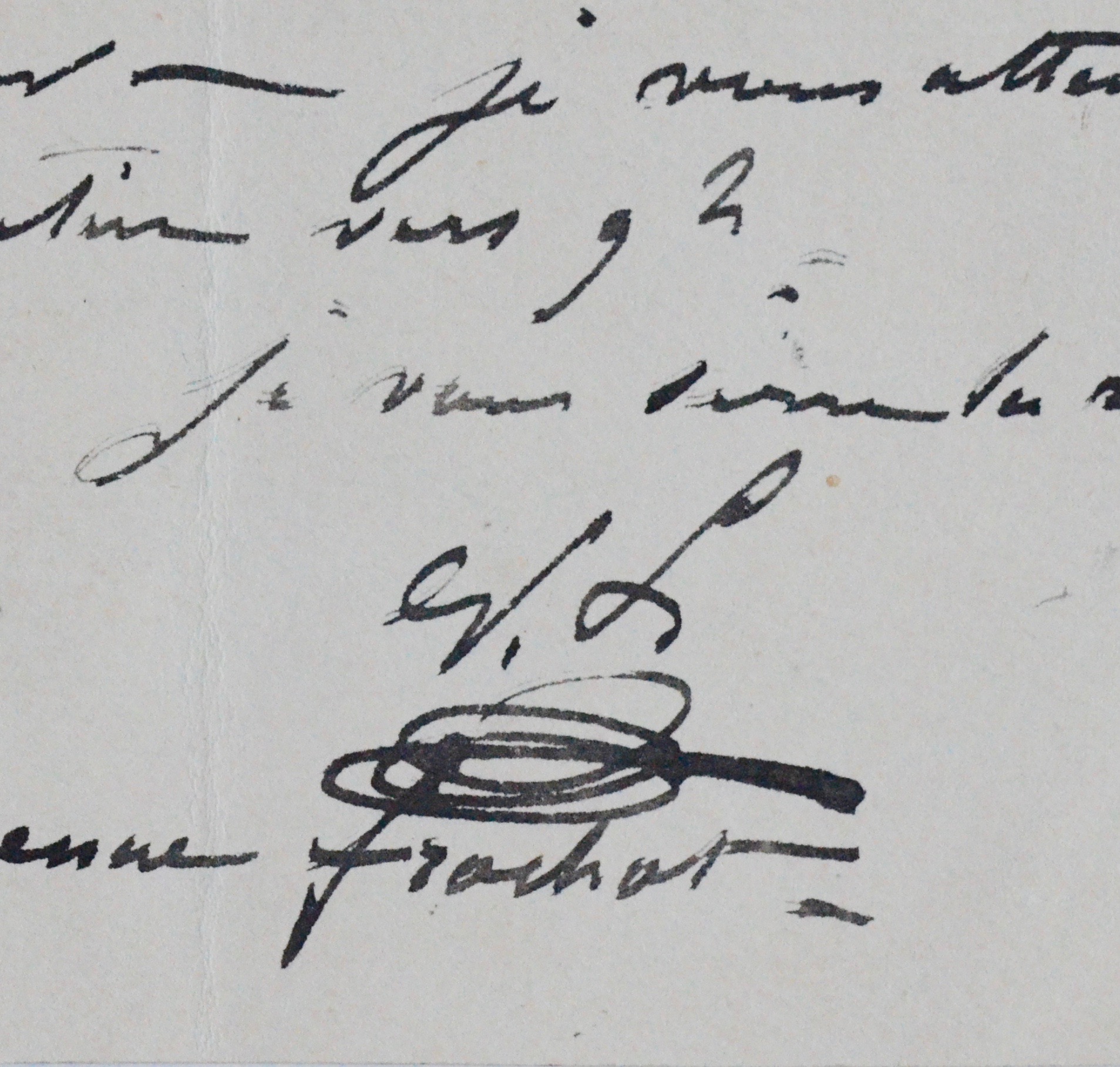 Évariste-Vital Luminais fixe un rendez-vous : "Je viens vous dire que je ne puis me trouver samedi matin à mon atelier. Je vous attendrai dimanche matin vers 9h. Je vous serre la main [..]". Signée des initiales "E.L."