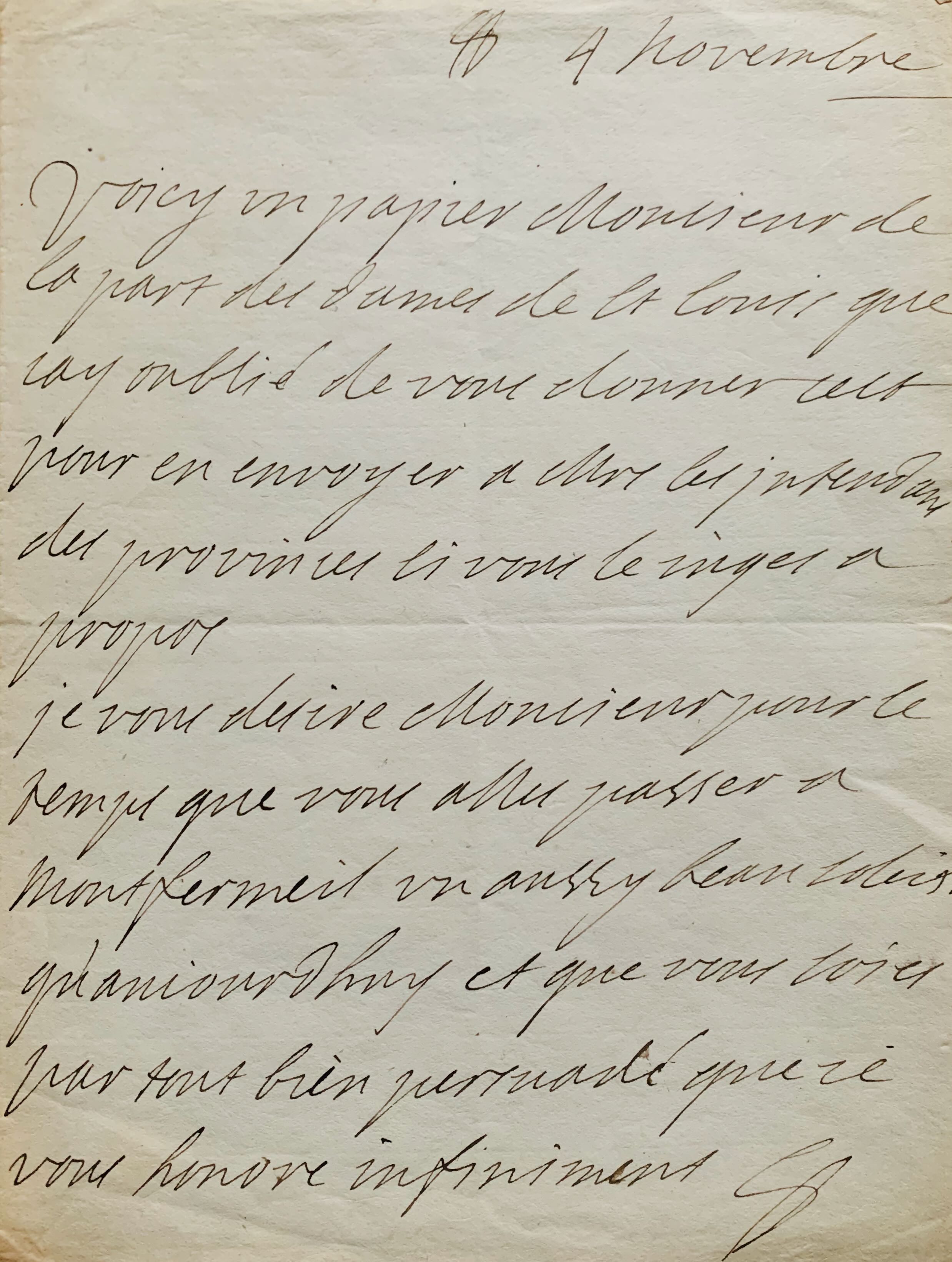 La lettre est signée de son paraphe.