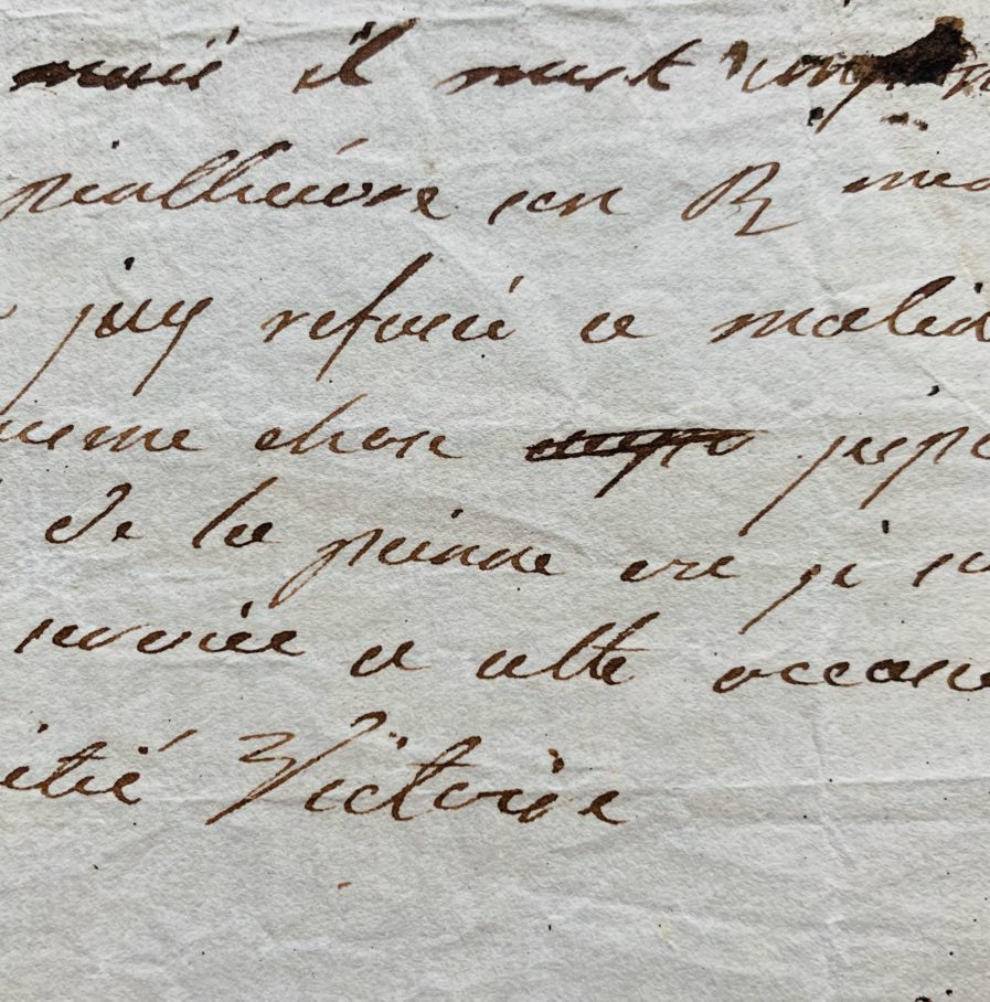"Je suis au désespoir Madame car il m'est impossible de demander à monsieur de Penthièvre [Louis-Jean-Marie de Bourbon (1725-1793)] [...] et encore plus de lui écrire. J'ay refusé ce matin madame de Maulde pour la même chose . J'espère que vous este bien persuadée de la peine où je suis de ne pouvoir vous rendre service à cette occasion, devant entre sure de mon amitié".