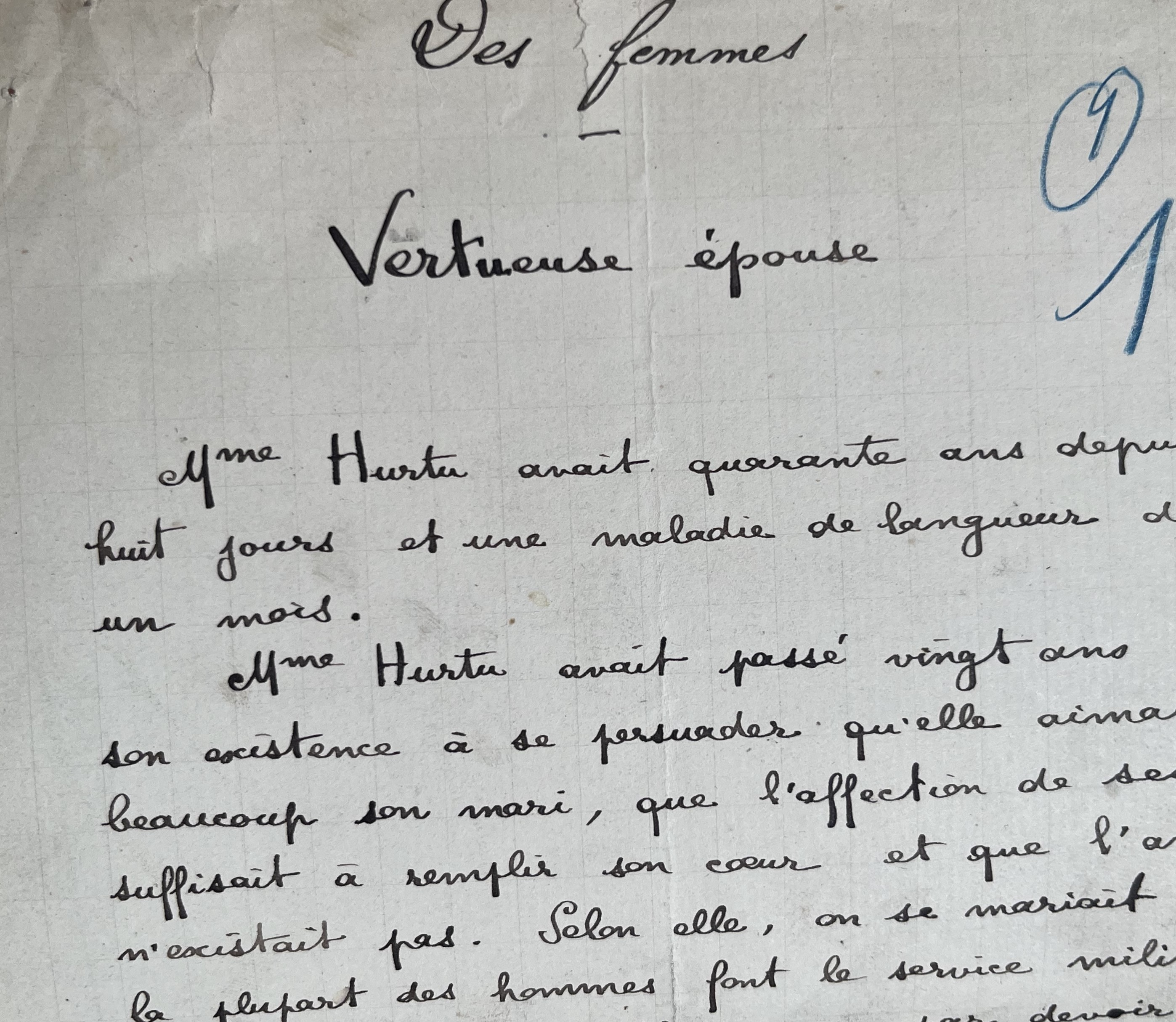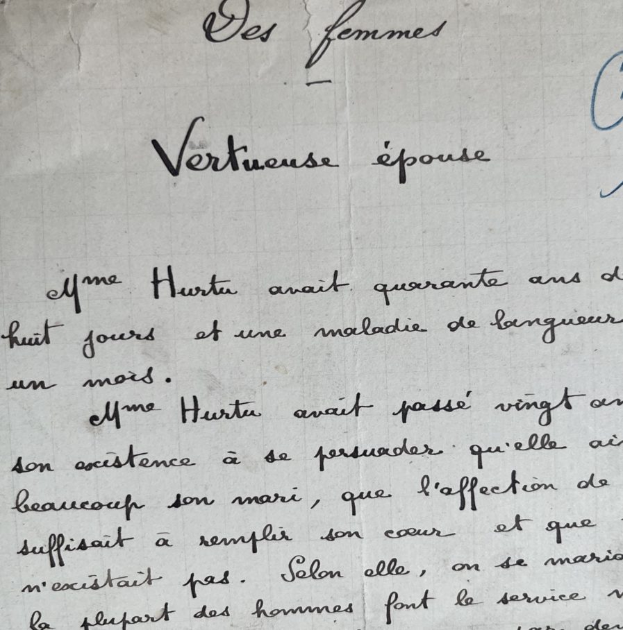 Jean de La Hire (Banyuls-sur-Mer , 1878 /1956 )Manuscrit autographe de jeunesse d'Adolphe d'Espie, dit Jean de La Hire, intitulé « Des Femmes. Vertueuse épouse ».