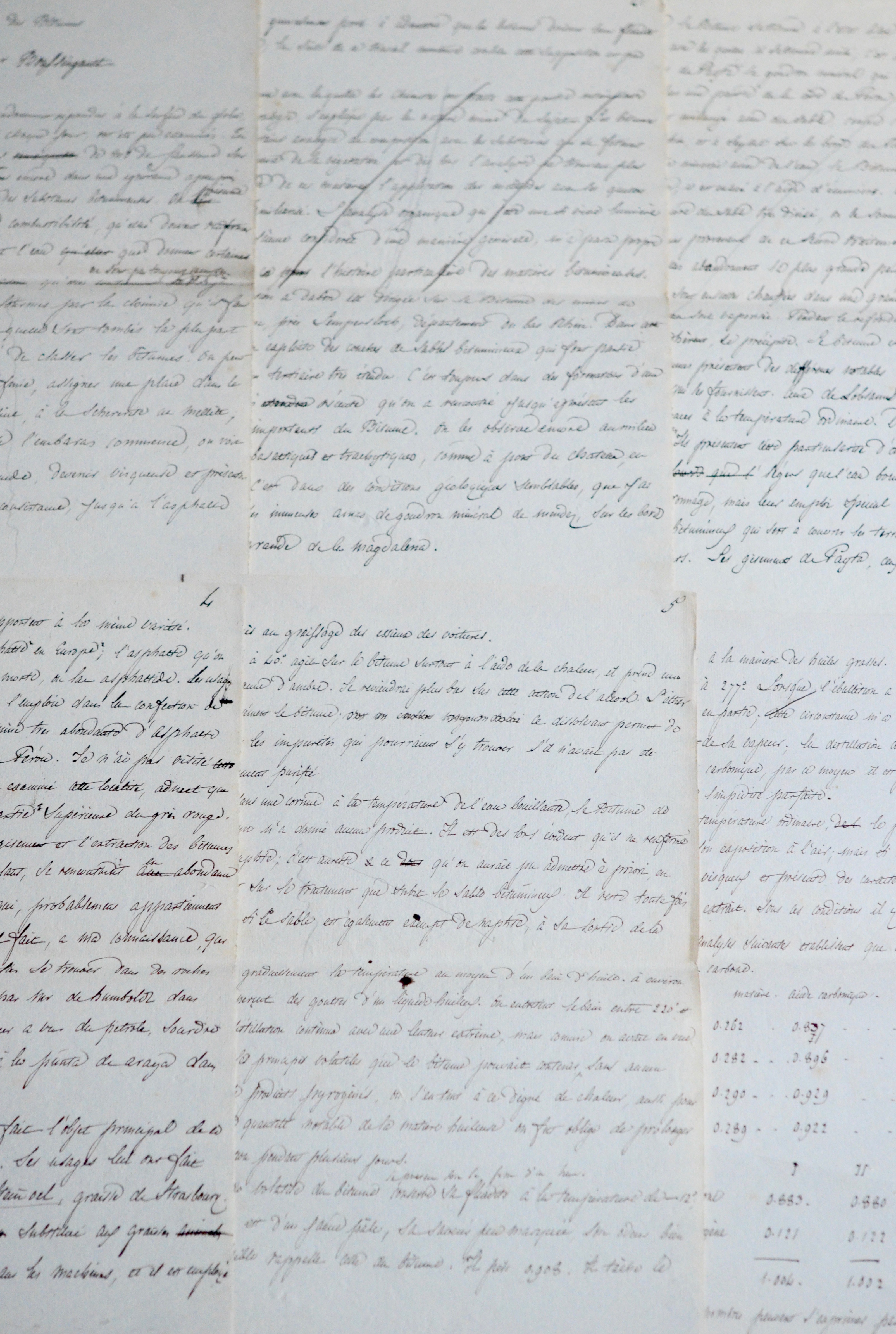 Jean Baptiste Boussingault (Paris, 1802/1887)Manuscrit de travail autographe de Jean-Baptiste Boussingault, intitulé : "Mémoire sur la composition des bitumes", avec ratures, ajouts et corrections.