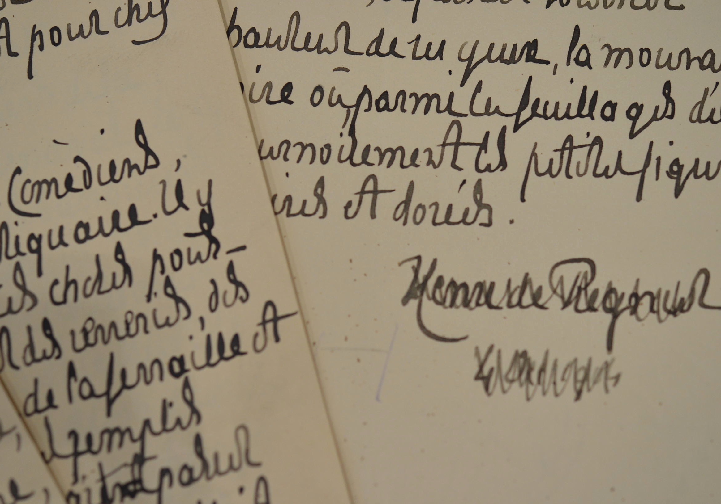 Manuscrit du poème en prose, "La Tasse", publié (avec quelques variantes, et dédié à Henri Gonse) dans les "Esquisse vénitiennes", en 1906. "C'est une tasse ronde [à boire, dans le texte imprimé], en bois laqué. J'aime beaucoup la faire tourner entre mes doigts, à la hauteur de mes yeux, parce que, sur son vernis noir, se détachent, en un vieil or terni, des feuillages délicats et des figurines costumées [...]".