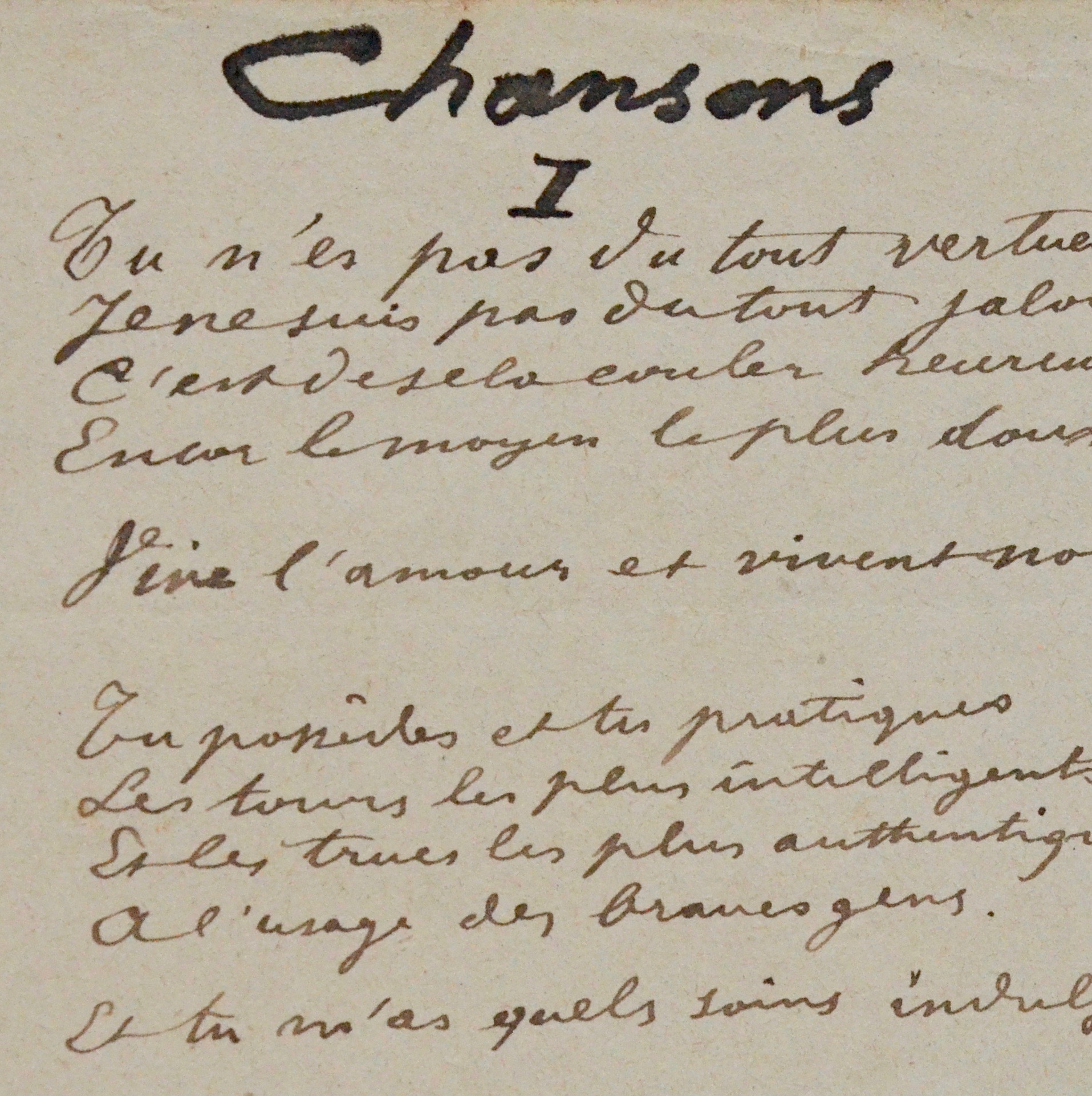 Manuscrit du premier poème des « Chansons pour elle » de Paul Verlaine