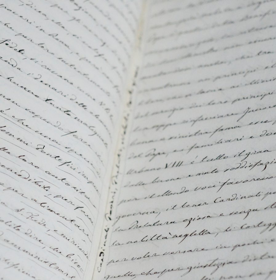 Cahier contenant la copie manuscrite du XIXe s. de plusieurs documents XVIIe et XVIIIe concernant la Corse : « Fatto dei soldati corsi avvenuto il 20 agosto 1662 e copia di une lettera del signor cardinale Giulio Sacchetti ad Alessandro VII », suivi de « Lettera di riposta al sacro collegio di s. Maesta Critianissima Lodovico XIV pel fatto dei soldati corsi anno 1663 », « Articoli fatti in Pisa Tra Alessandro VII e Lodovico XIV Re di Francia 1664 », « Viaggio del cardinal legato Ghigi in Francia 1665 », « Lettera dei Corsi dell Isola ai Cordi del Continente 1732 ». Sous reliure toilée verte. En italien.