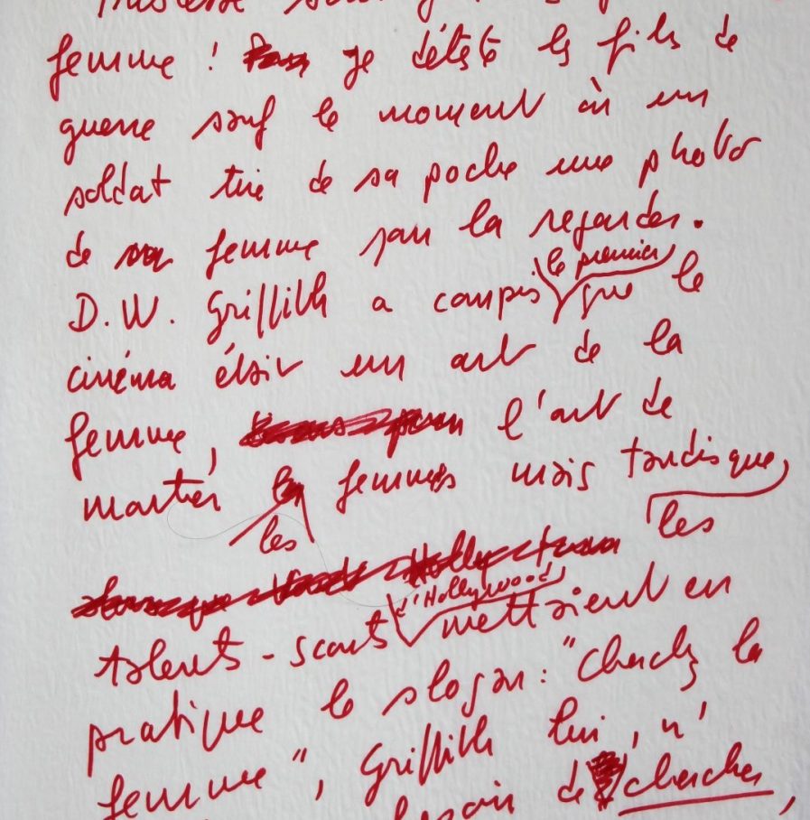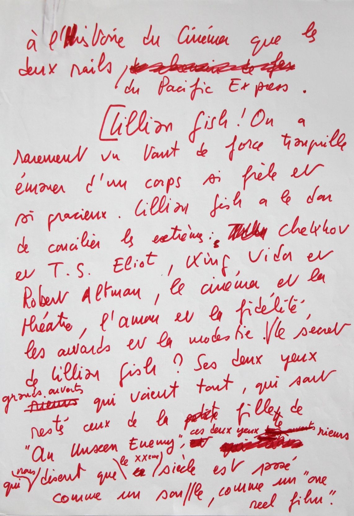 Manuscrit d’un bel article de François Truffaut sur Lillian Gish.