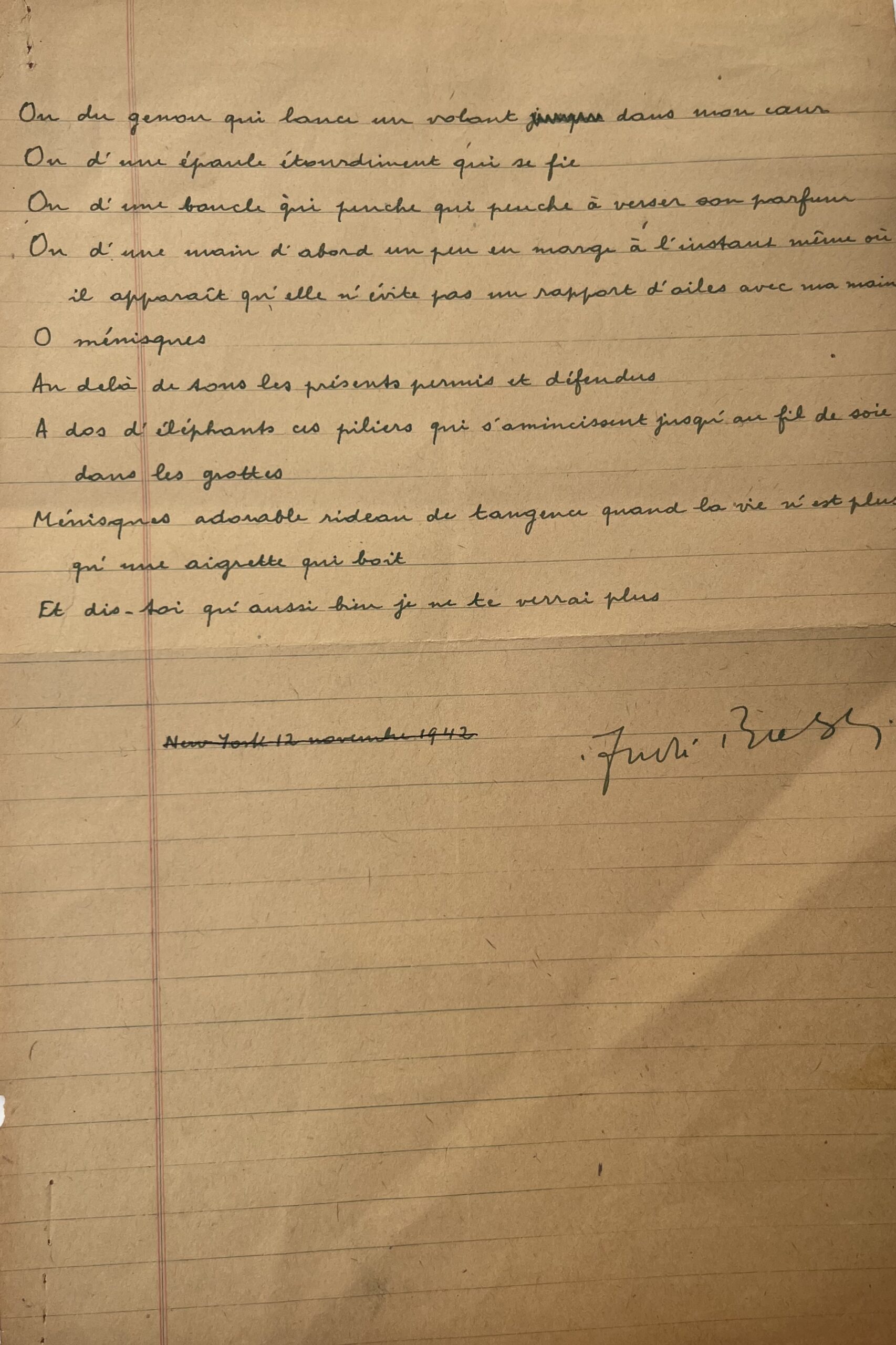 Manuscrit d’un long poème d’André Breton intitulé « Frôleuse », écrit à New York en 1942