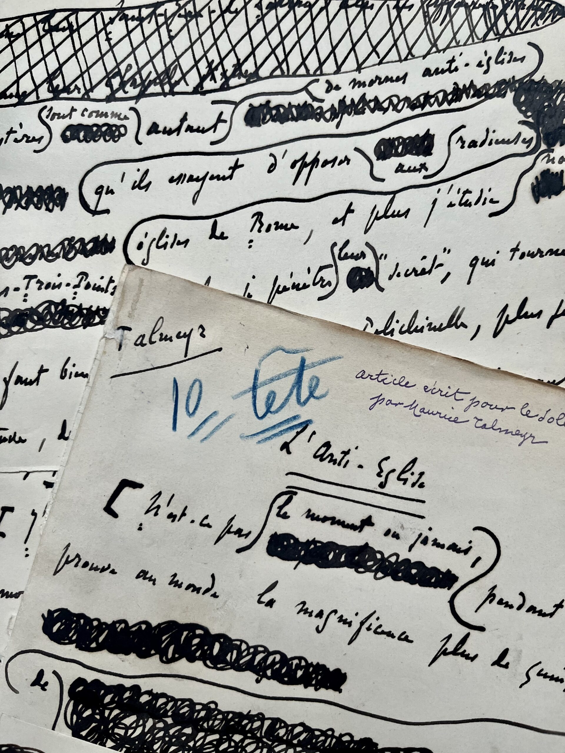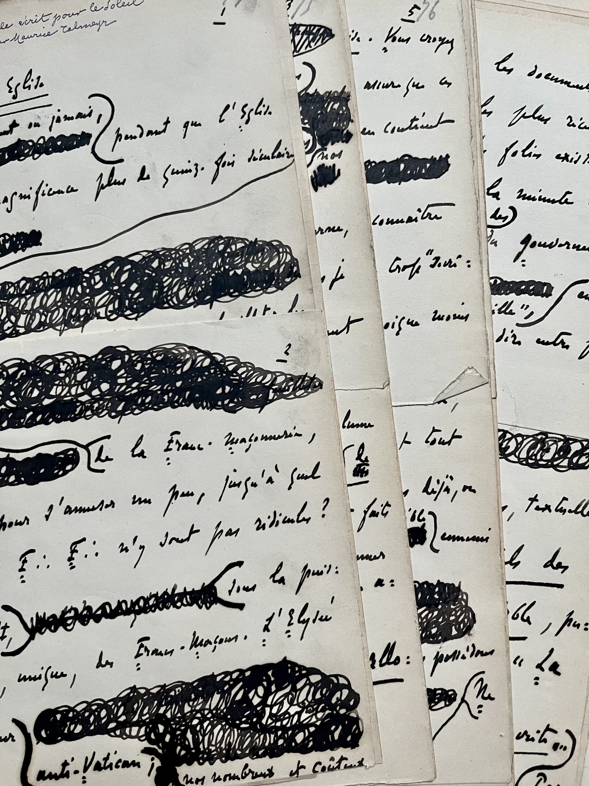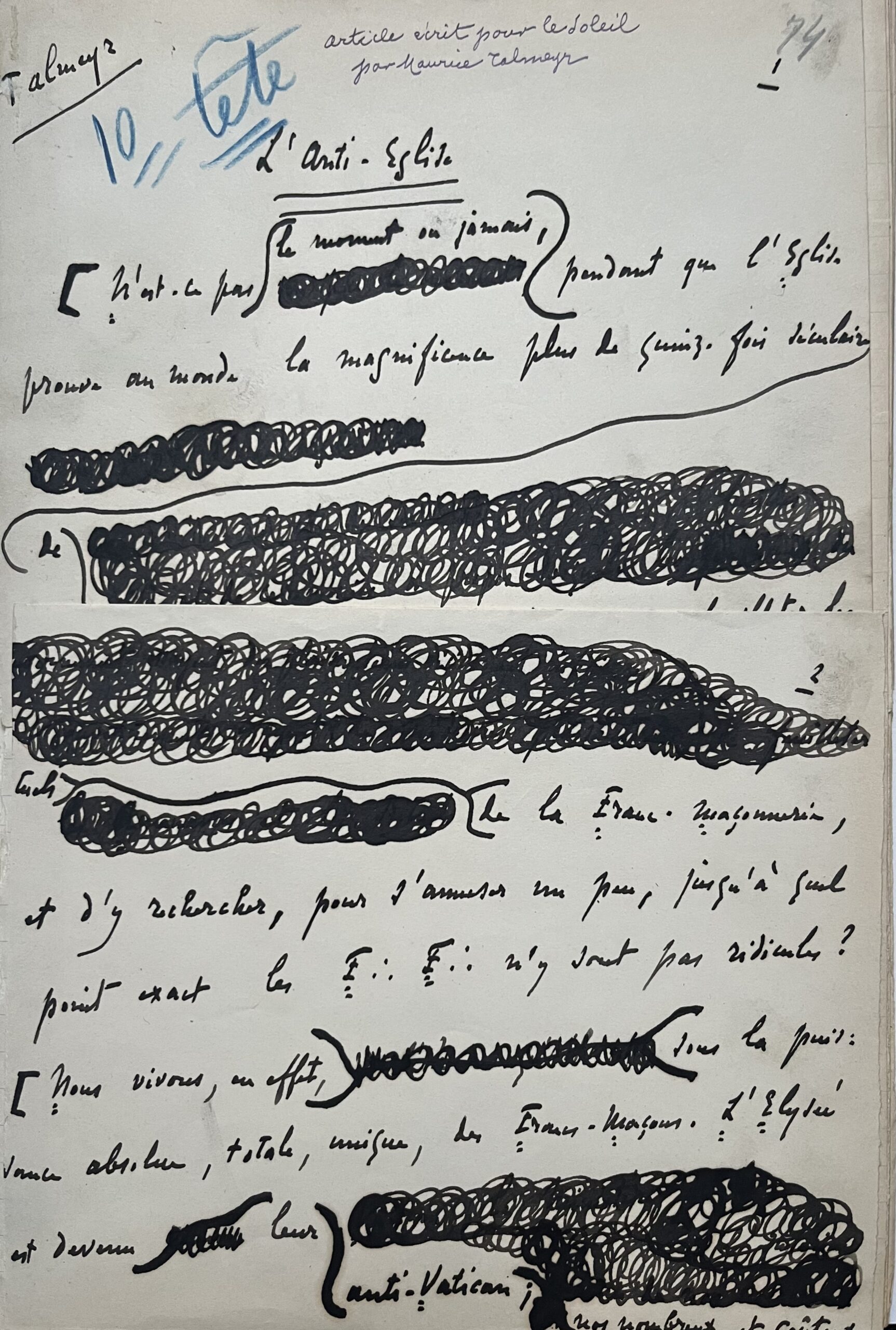 Manuscrit d’un violent article anti-maçonnique de Maurice Talmeyr