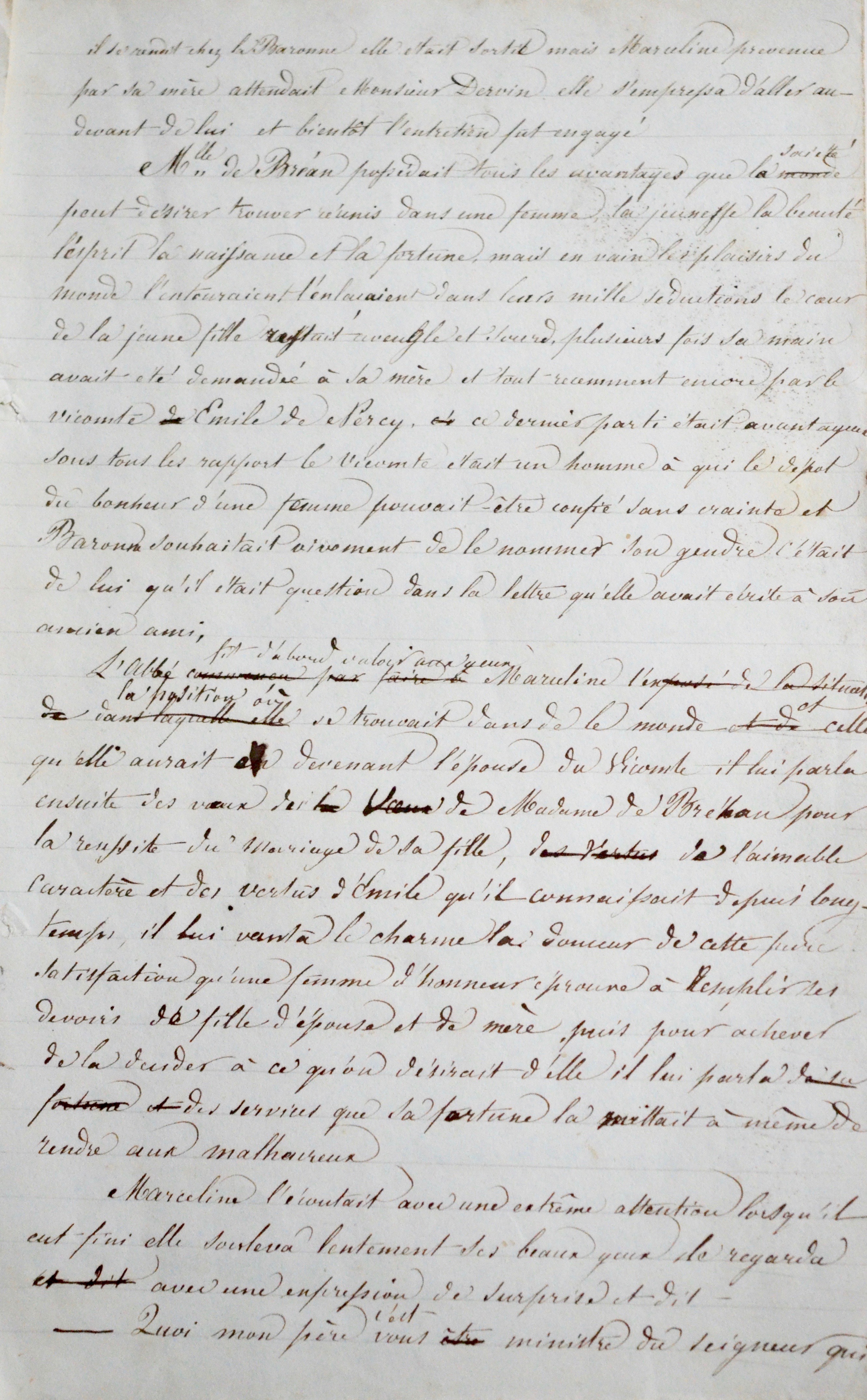 Manuscrit d’une version inédite de Marceline, d’Élisa Mercoeur.