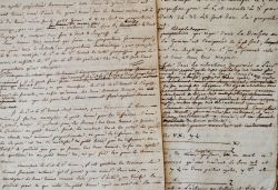Jean-Baptiste Lacoste (Dijon, 1725/1793)Ces trois manuscrits du poète Jean-Baptiste Lacoste témoignent de l'enthousiasme avec lequel il travaille à un essai sur la Musique. Il s'agit en effet de trois versions différentes, avec biffures, corrections et ajouts, d'un même texte consacré à la musique : « On appelle proportion harmonique celle dont le grand terme est au petit terme, comme l'excès du grand terme sur le terme moyen est à l'excès du terme moyen sur le petit terme. 6.8.12 sont en proportion harmonique parce que de même que 12 contient deux fois 6, ainsi que 4 dont 12 surpasse 8 contient deux fois le 2 dont 8 surpasse 6. » Cet intéressant essai, semble-t-il inédit, est la preuve que mathématiques et musique sont intimement liées. Rare document.