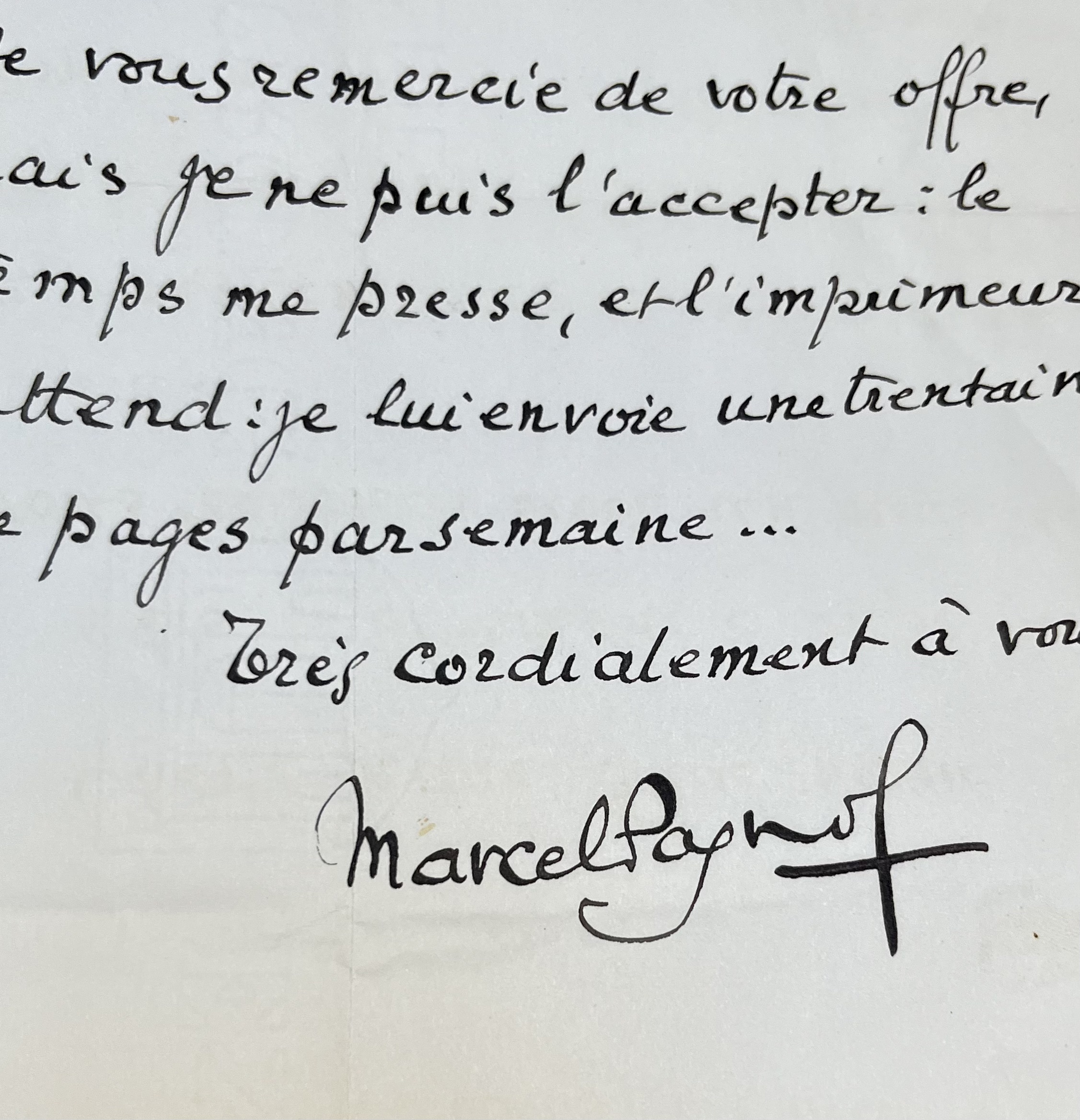 Marcel Pagnol, submergé de travail, refuse toute nouvelle collaboration