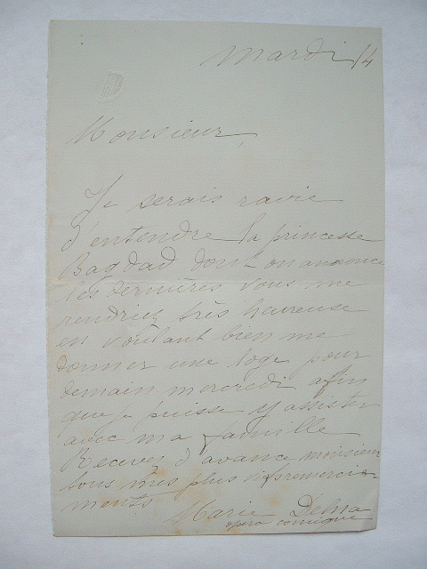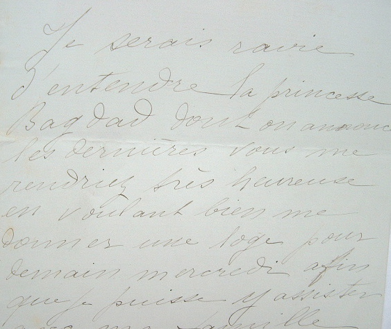 Elle demande une loge pour aller voir la Princesse Bagdad avec sa famille.