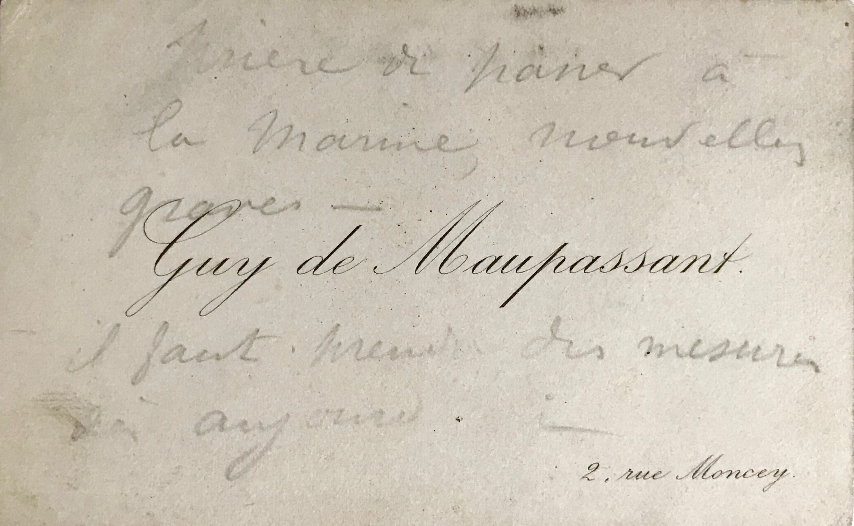 Sur sa carte de visite Guy de Maupassant inscrit 4 lignes au crayon.