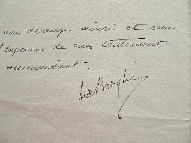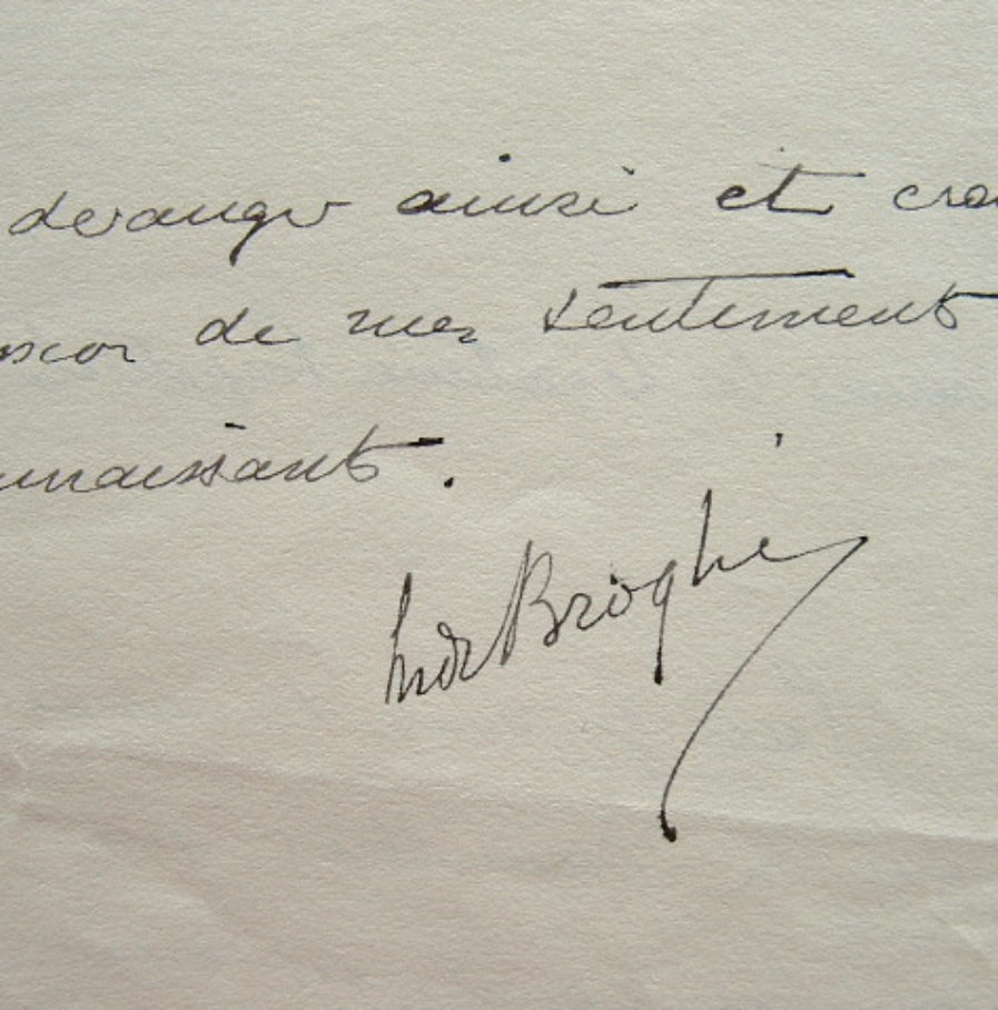 «Puis-je vous demander de recevoir M. Dauvillier qui voudrait pouvoir faire quelques essais d'analyse spectrale par rayons X sur divers minéraux naturels en vue de rechercher les éléments inconnus que la classification périodique fait prévoir [...]». [L'astrophysicien Alexandre Dauvillier fut un des étudiants du laboratoire de Maurice de Broglie ; il l'assista particulièrement dans ses recherches sur les spectres de rayons X].