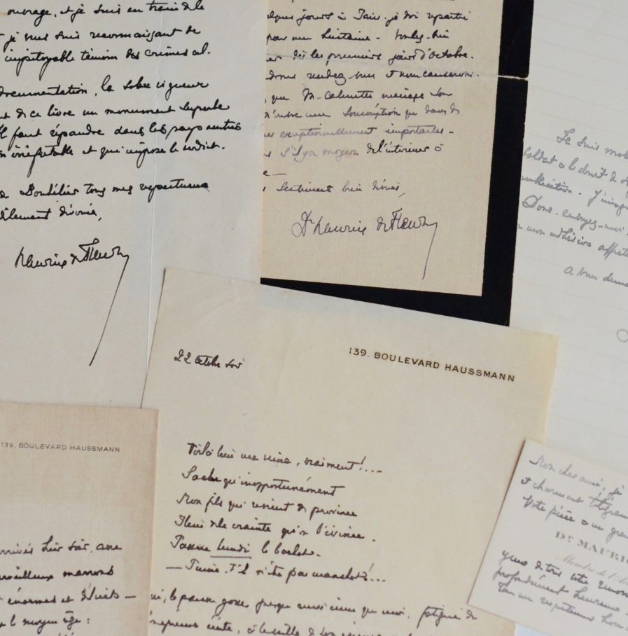 Maurice Fleury (de) (Bordeaux, 1860/1931)Ensemble de cinq lettres et une carte de Maurice de Fleury, adressées à son ami, le poète Saint-Georges de Bouhélier.