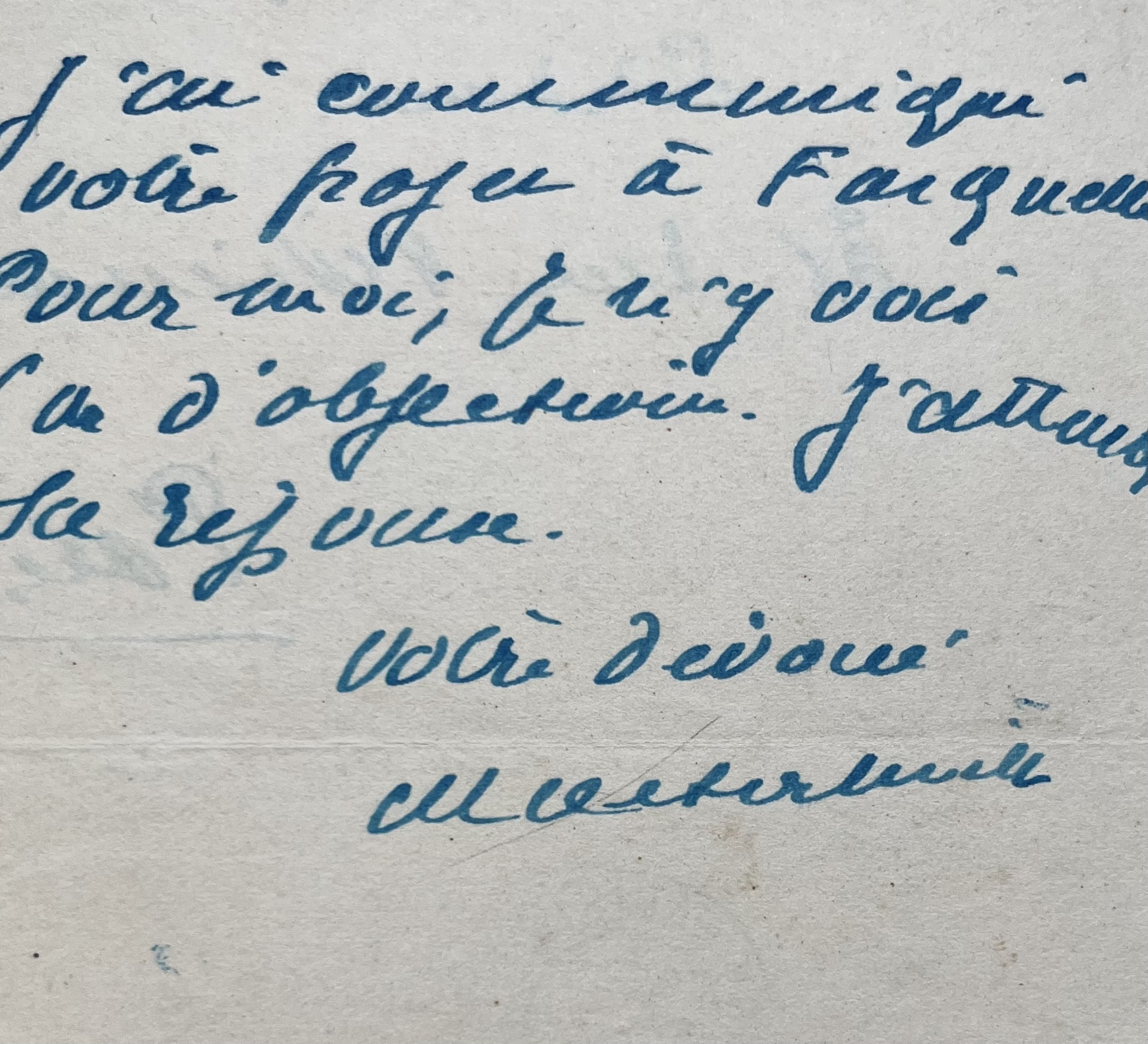 Maurice Maeterlinck transmet un projet à Eugène Fasquelle