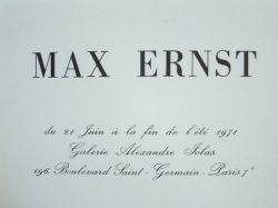 Joli carton d'invitation à l'exposition Max Ernst à la galerie Alexandre Jolas, à Paris, illustré d'une reproduction d'un dessin de l'artiste.