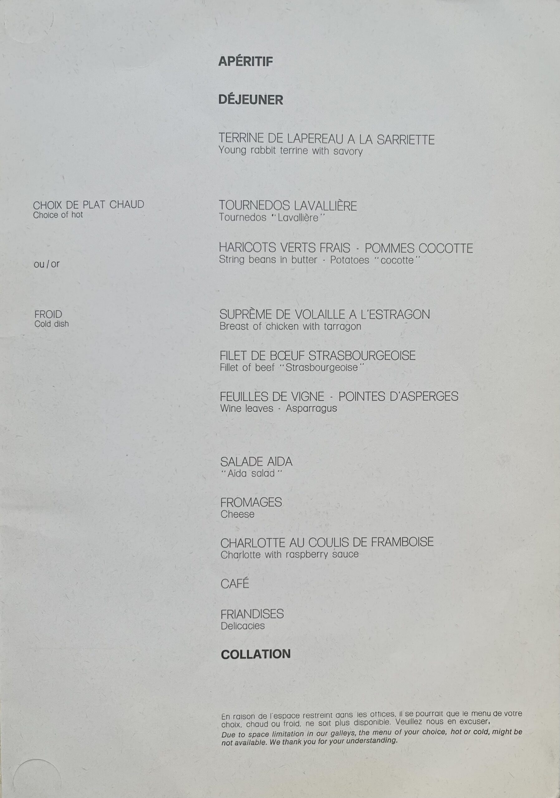 Menu Air France dédicacé par l’astronaute Neil Armstrong