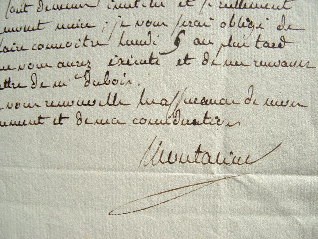 Montalivet, alors directeur général des Ponts-et-Chaussées, transmet à Bequey Beaupré une requête du préfet de Police «relative à des pieux qui gênent la navigation sous la principale arche du pont de la Tournelle [sur la Seine, à Paris]. Je vous prie de les faire arracher s'ils sont devenus inutiles et si réellement ils peuvent nuire». Il demande de lui en rendre compte.