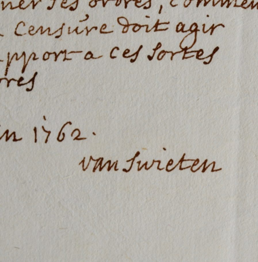 Note de Van Swieten apostillé par Marie-Thérèse d’Autriche