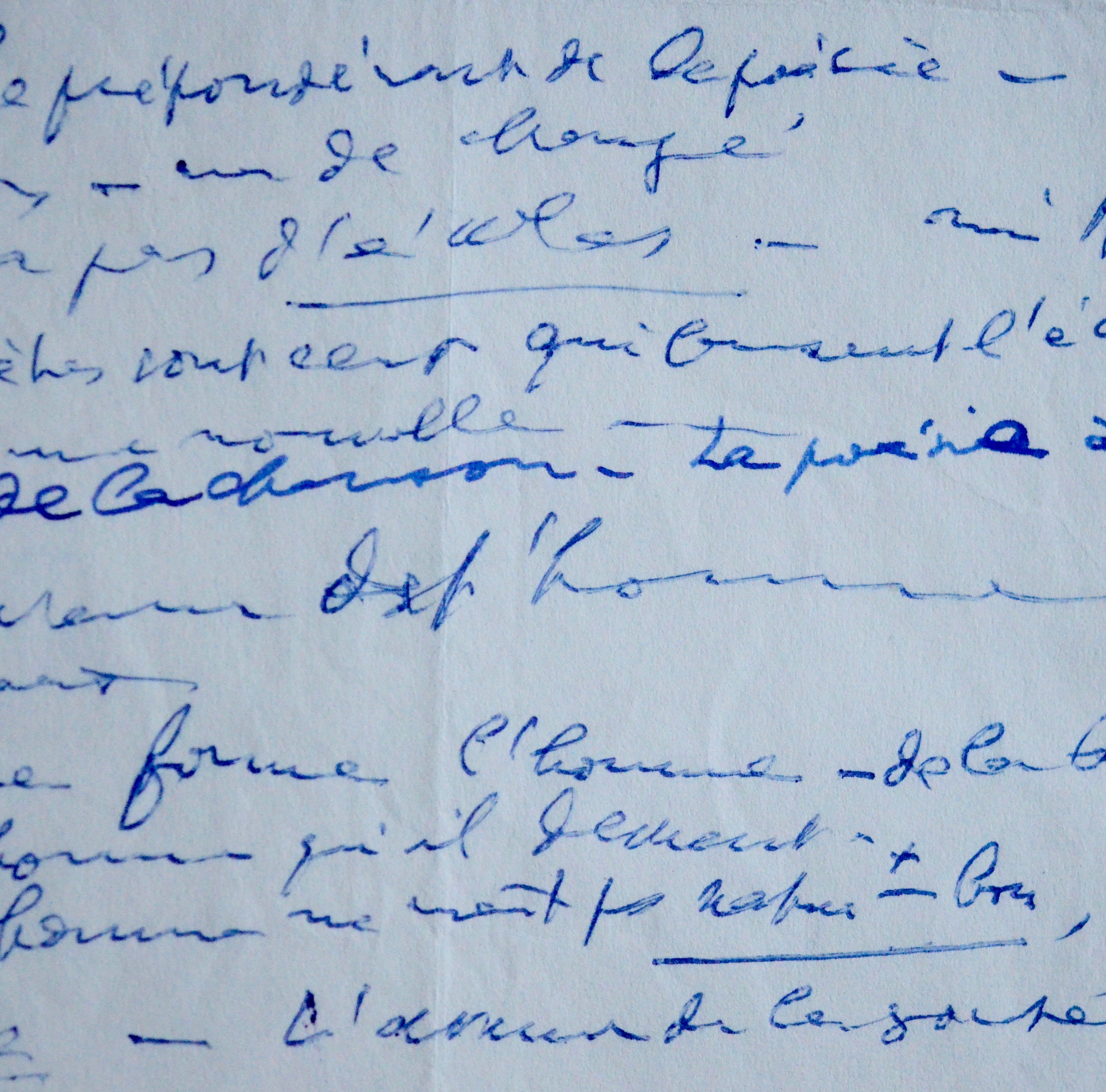 Notes autographes de Louis Aragon, sur la poésie et la femme