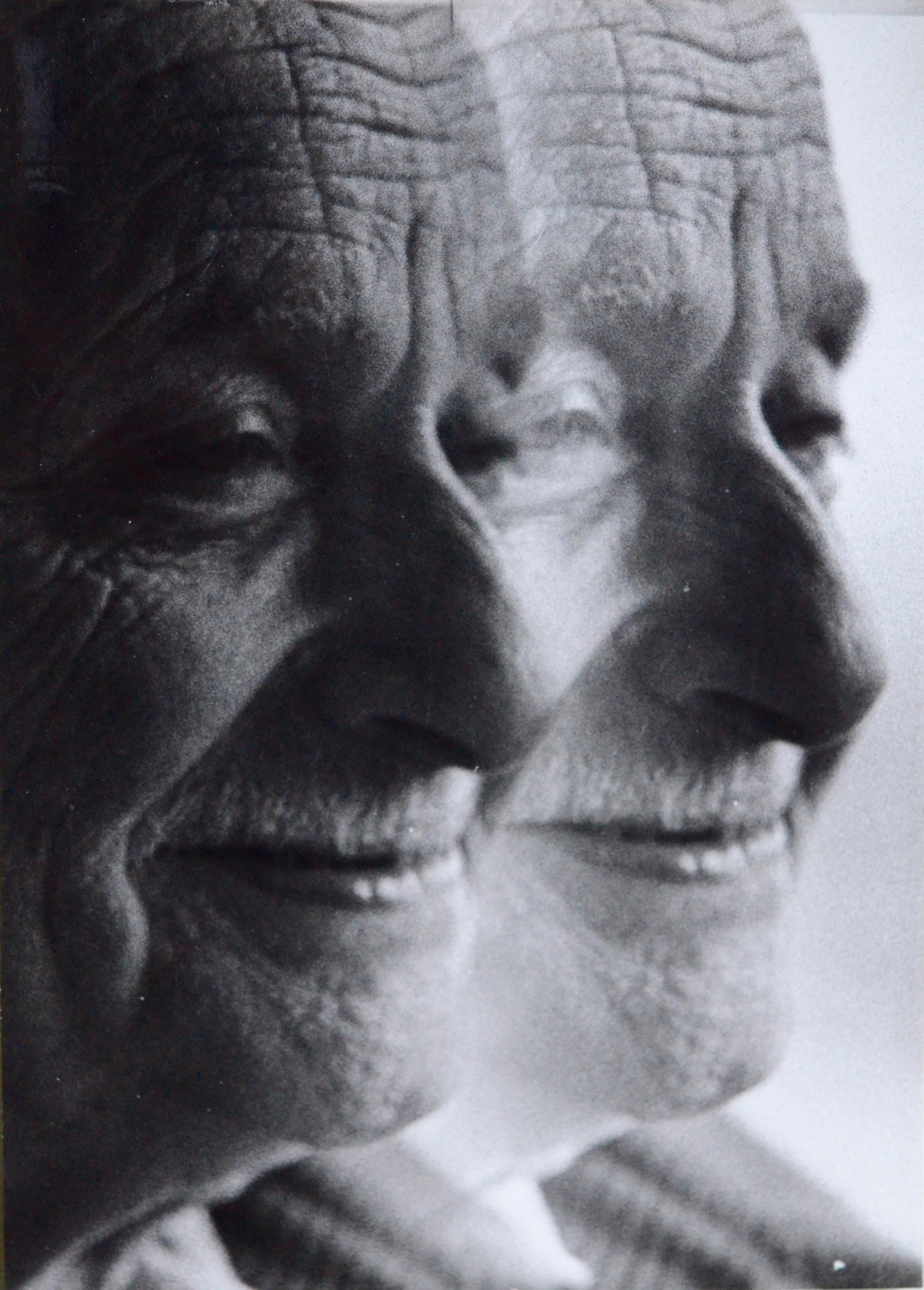 On joint un portrait d'Aragon, réalisé par le photographe Daniel Wallard. Le visage du poète est double. 1978.