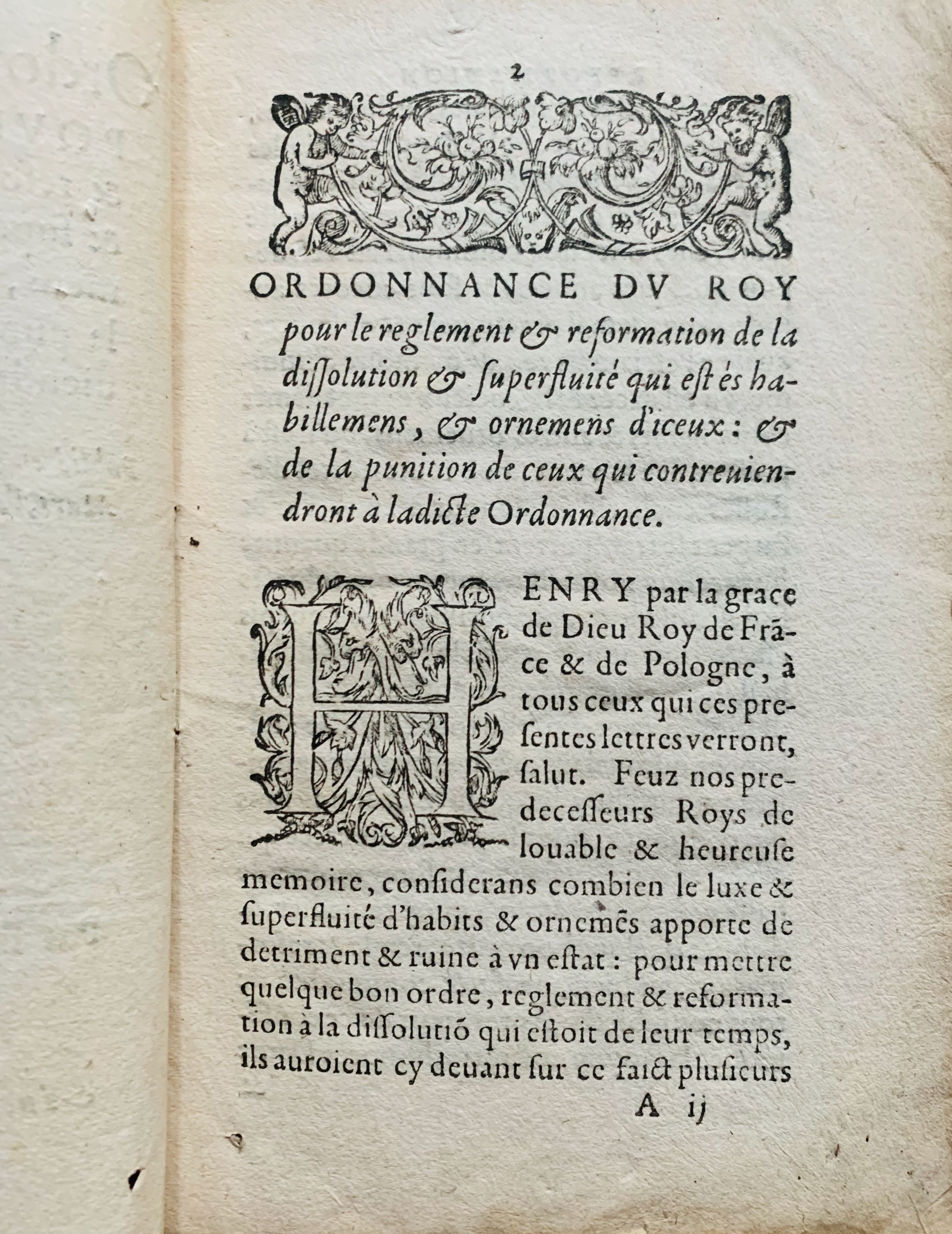 Ordonnance (imprimée) d’Henri III sur le port des vêtements des luxe et des bijoux