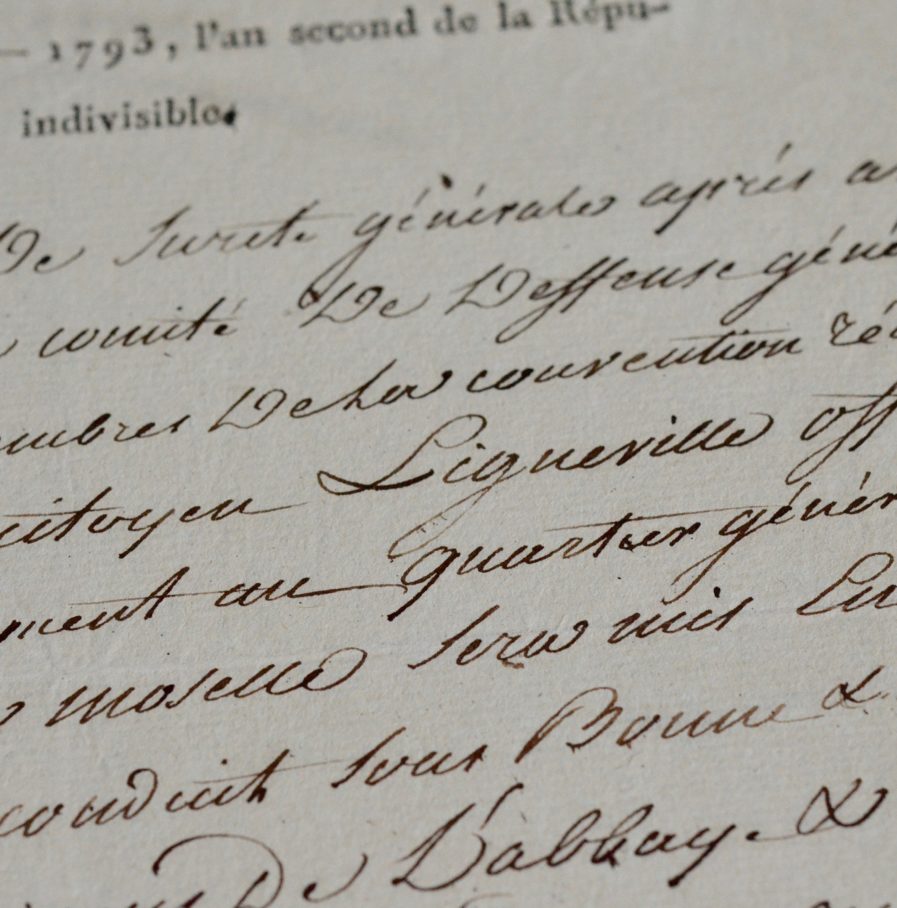 Ordre du Comité de Sûreté générale d'arrêter le comte René-Charles Elisabeth de Ligneville : "officier général actuellement au quartier général de l'armée de la Moselle sera mis en état d'arrestation, conduit sous bonne & sure garde aux prisons de l'Abbaye" qui sera "au secret jusqu'à nouvel ordre".