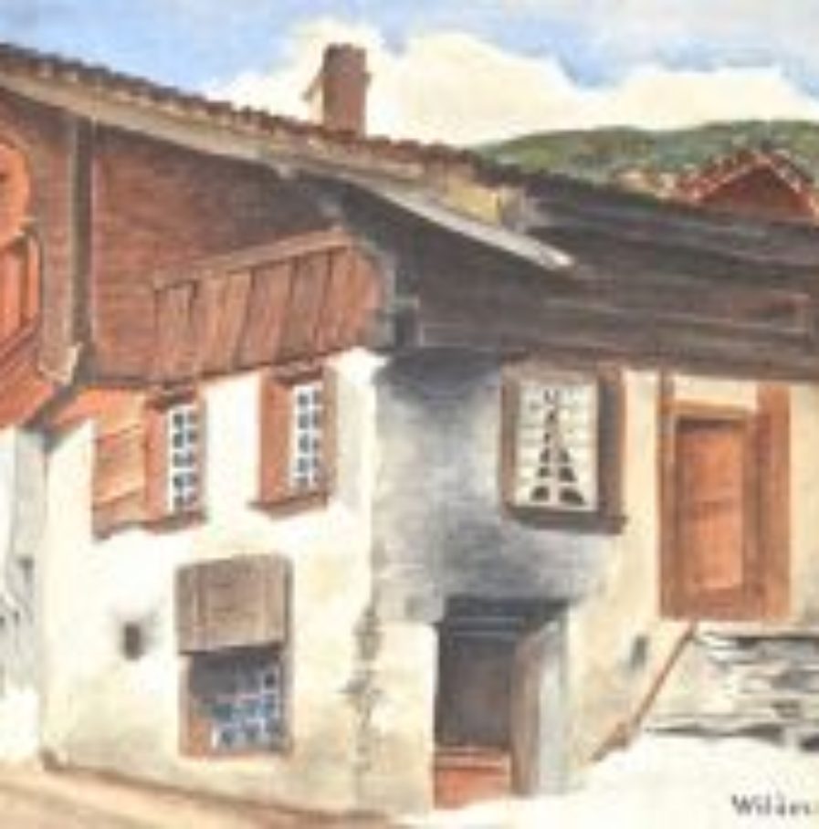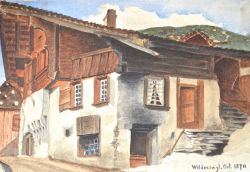 Deux jolies dessins réalisés à la gouache et à l'aquarelle, en 1870, représentant des habitations typiques du village de Wilderswil, en Suisse (canton de Berne). Non signés.