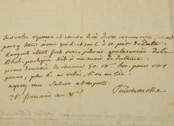 Charles Joseph Panckoucke (Lille, 1736/1798)Intéressante lettre de Panckoucke à Marmontel, précisant l'offre qu'il lui faite pour publier plusieurs ouvrages. Ayant reçu une lettre de l'abbé Morellet, il y a répondu, mais sa lettre a été égarée. "Je vous offrois mille écus comptant à mesure de la livraison des manuscrits de vos trois ouvrages, savoir La Grammaire, La Rhétorique, La Poétique, dont vous me feriez cession [...]. De plus vous recevrez 1500 l. à la 2e édition, 750 l. à la 3e, et 375 à la 4e. Dans le cas de cession de ma part, mon acquéreur seroit tenu aux mêmes conditions. Je vous offrois 4000 l. payable un an après la (?) pour pareille cession des contes moraux, Bélizaire, Incas, [...] et 2000 l. à la 2e édition d'une part, 1000 l. à la 3e, 500 l. à la 4e puis zéro". Il le prie de le laisser traiter à sa place avec ses premiers acquéreurs, et lui demande la remise de son premier manuscrit.