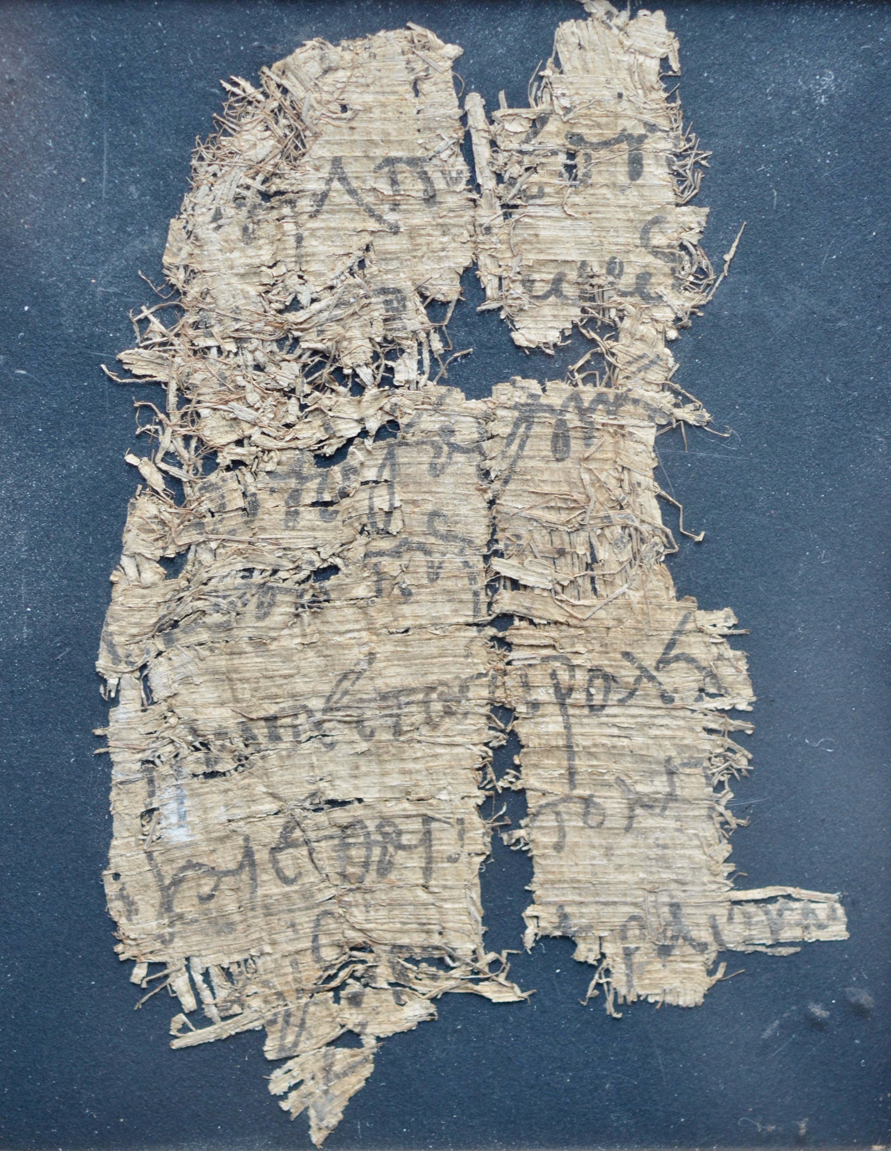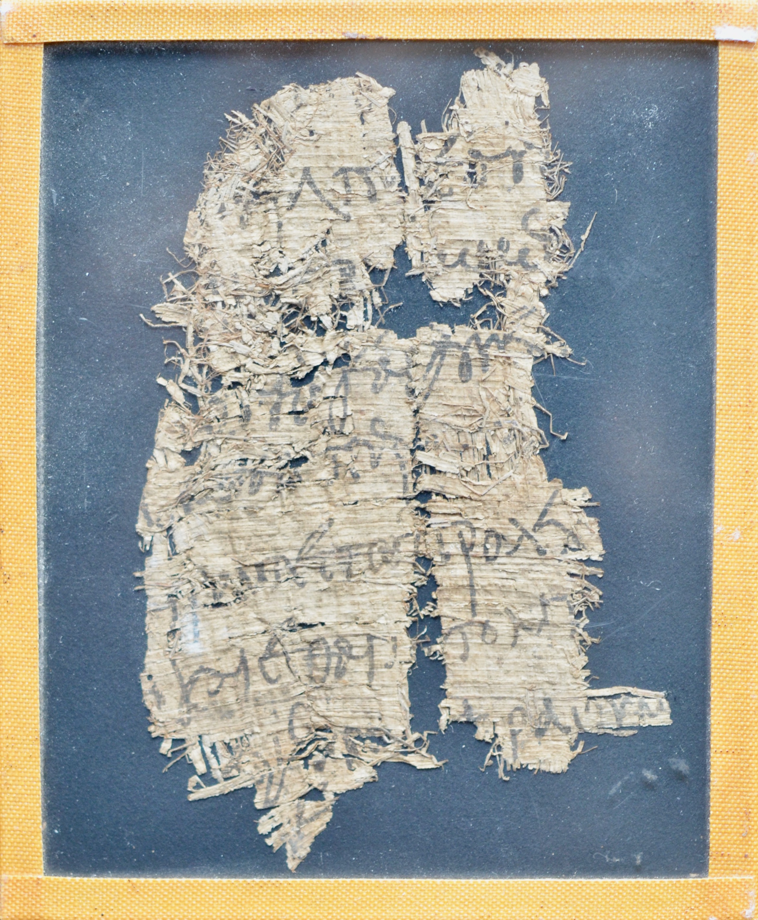 Papyrus fragmentaire, en grec, provenant d'Egypte. Difficile à lire. Encadré.