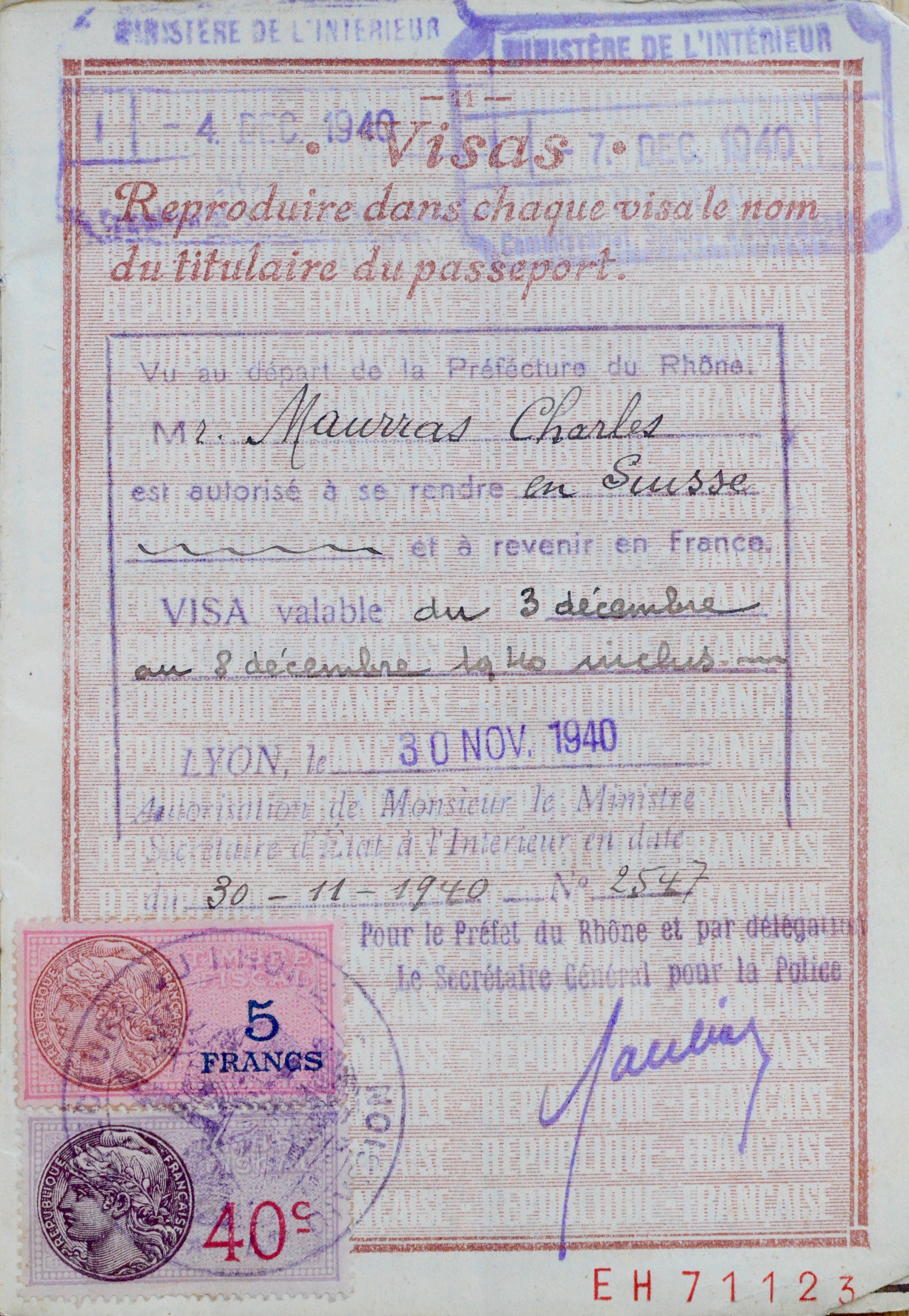 Passeport de Charles Maurras, pour les années 1937 à 1943