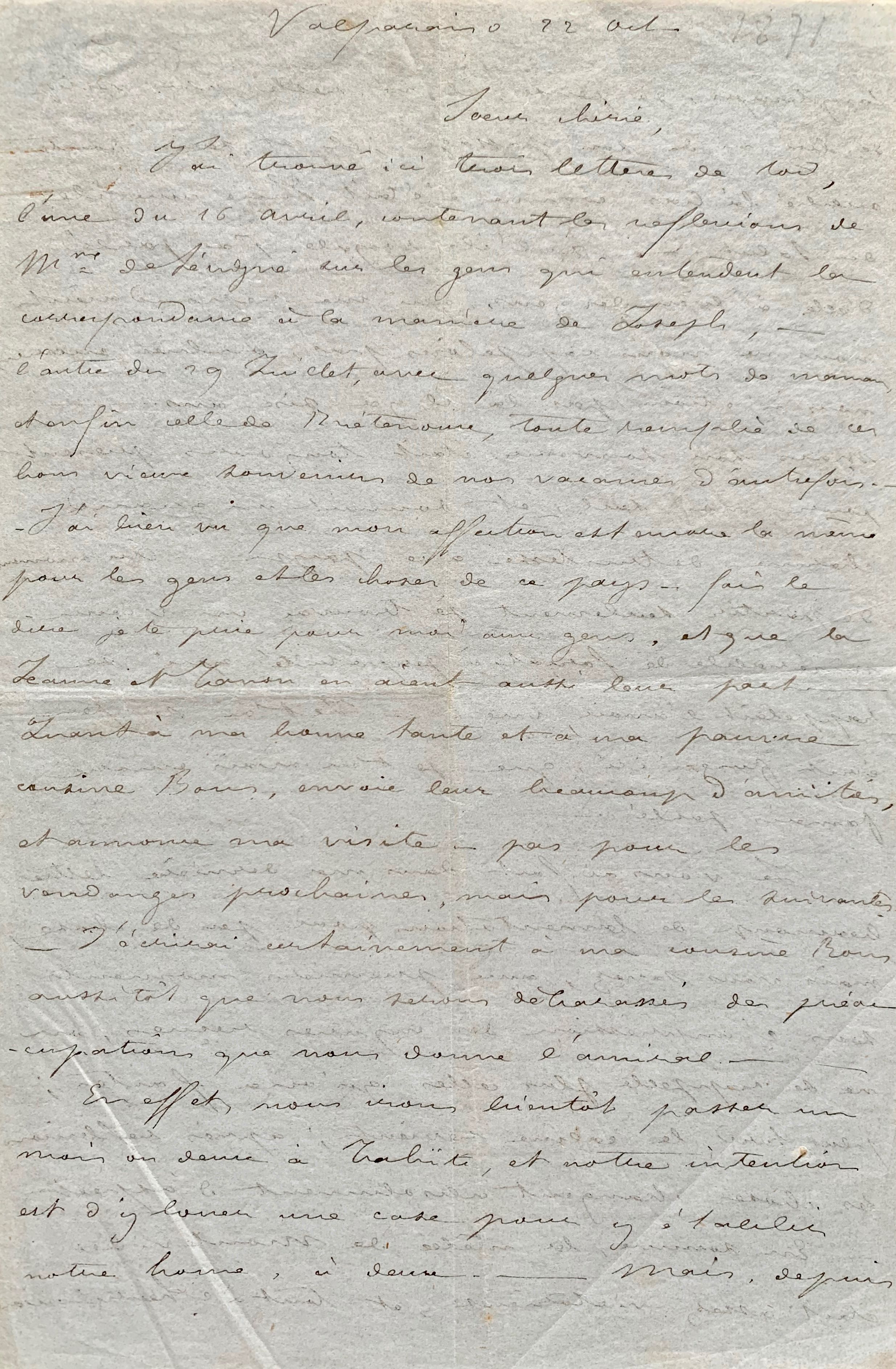 Passionnante lettre de Pierre Loti, de Valparaiso, avant de partir pour l’île de Pâques et Tahiti