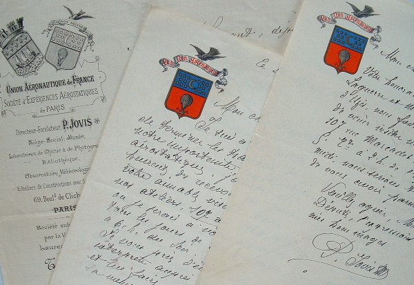 Paul Jovis (0/1891)Il est à la veille de terminer une «importante construction aérostatique» et demande à Laisant de lui rendre visite dans son atelier. Il regrette de ne pas «s'étendre sur la question aérostatique, si importante en ce moment, et que notre gouvernement néglige pour ne s'occuper que de l'anéantissement du boulangisme». Ce dernier sujet ne l'intéresse pas. Il préfère employer son temps à ses recherches et compte, pour cela, sur l'appui de son correspondant, pour «l'aider à poursuivre la tâche si difficile» qu'il s'est «imposée». Une aide sollicitée alors que «Les princes russes attendent la fin de notre construction pour entreprendre une série d'expériences, ce qui pour nous, serait un nouveau trait d'union entre la France et la Russie».