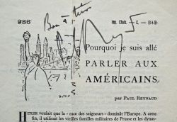 On joInt lépreuve corrigée avec « bon à tirer » dune plaquette de Paul Reynaud, Pourquoi je suis allé parler aux Américains.