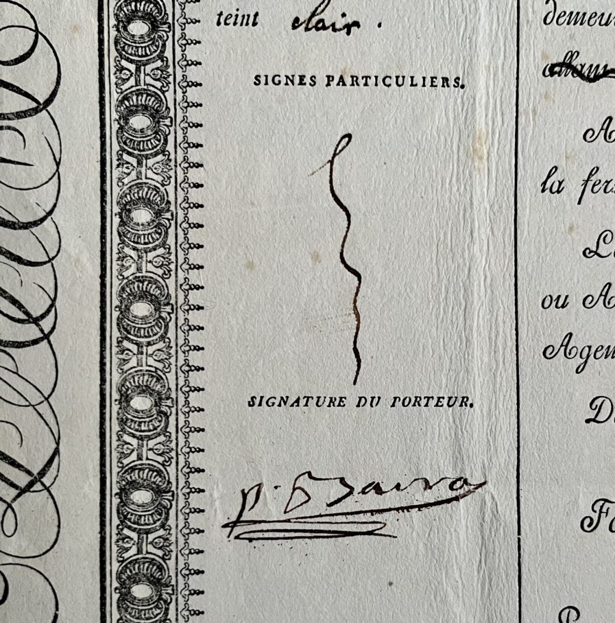 Cadre imprimé, armes de France en tête. Signé par le préfet de police, le comte Jules Anglès (1778-1828).