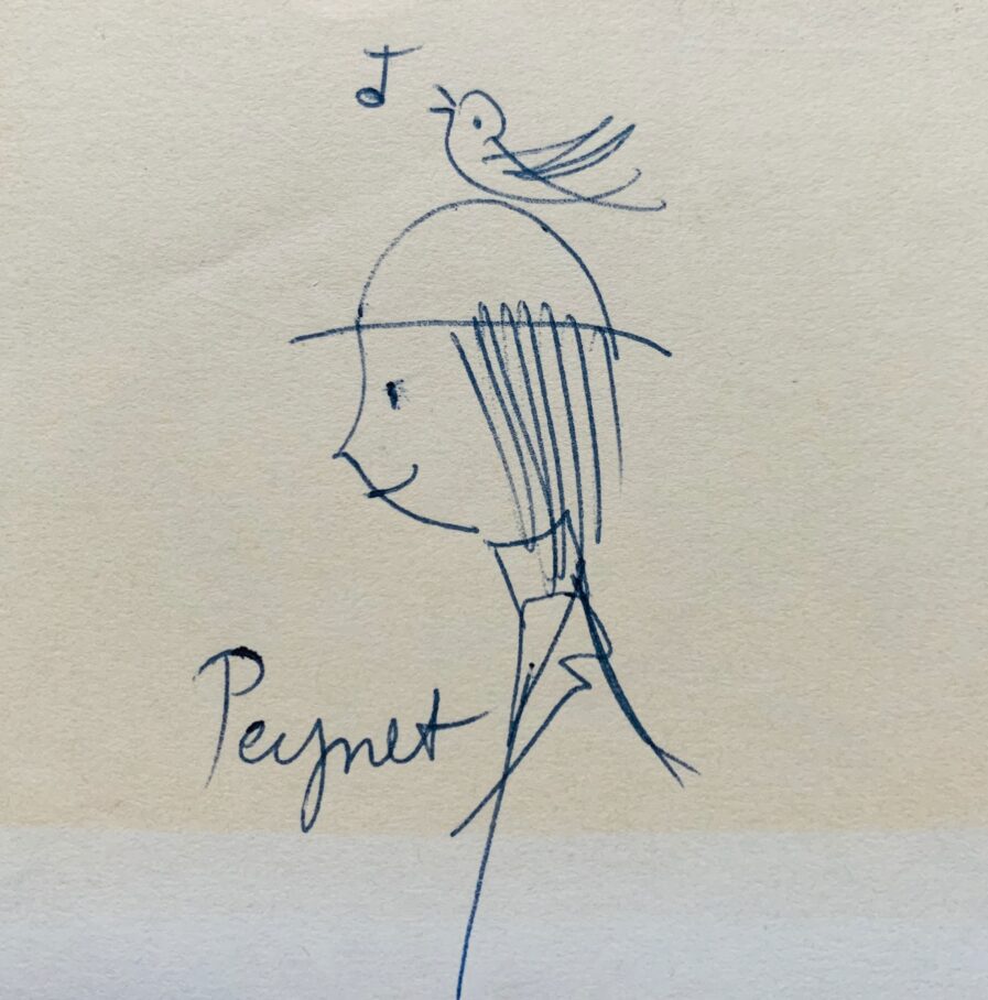 Petit dessin du poète amoureux à l’oiseau de Peynet