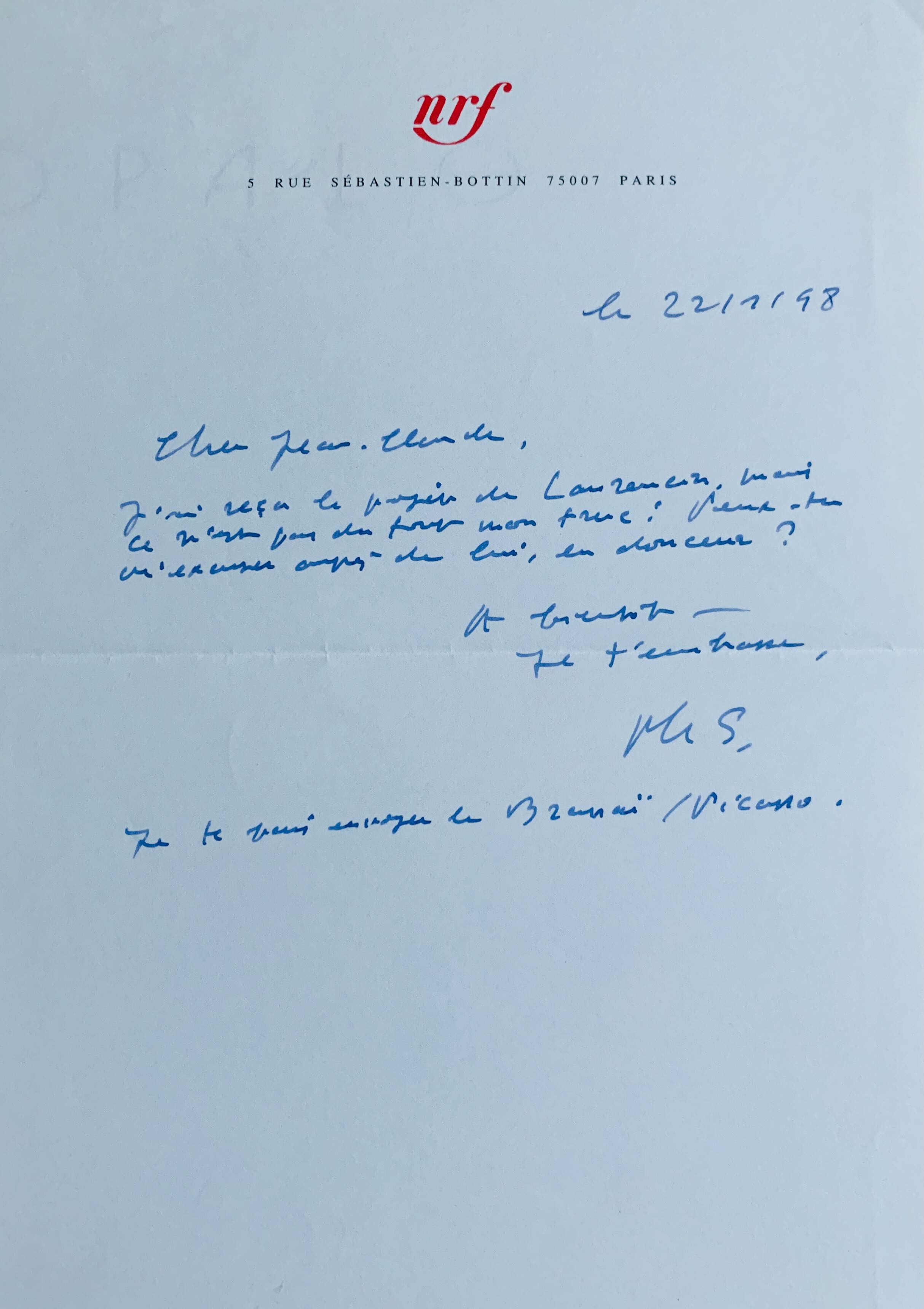 Philippe Sollers propose l’envoi d’un exemplaire Brassaï / Picasso
