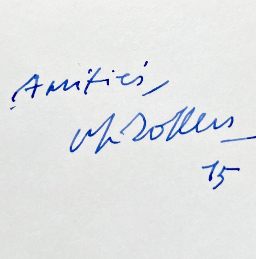 Collée sur bristol avec envoi autographe : "Amitiés. Ph Sollers. 15".