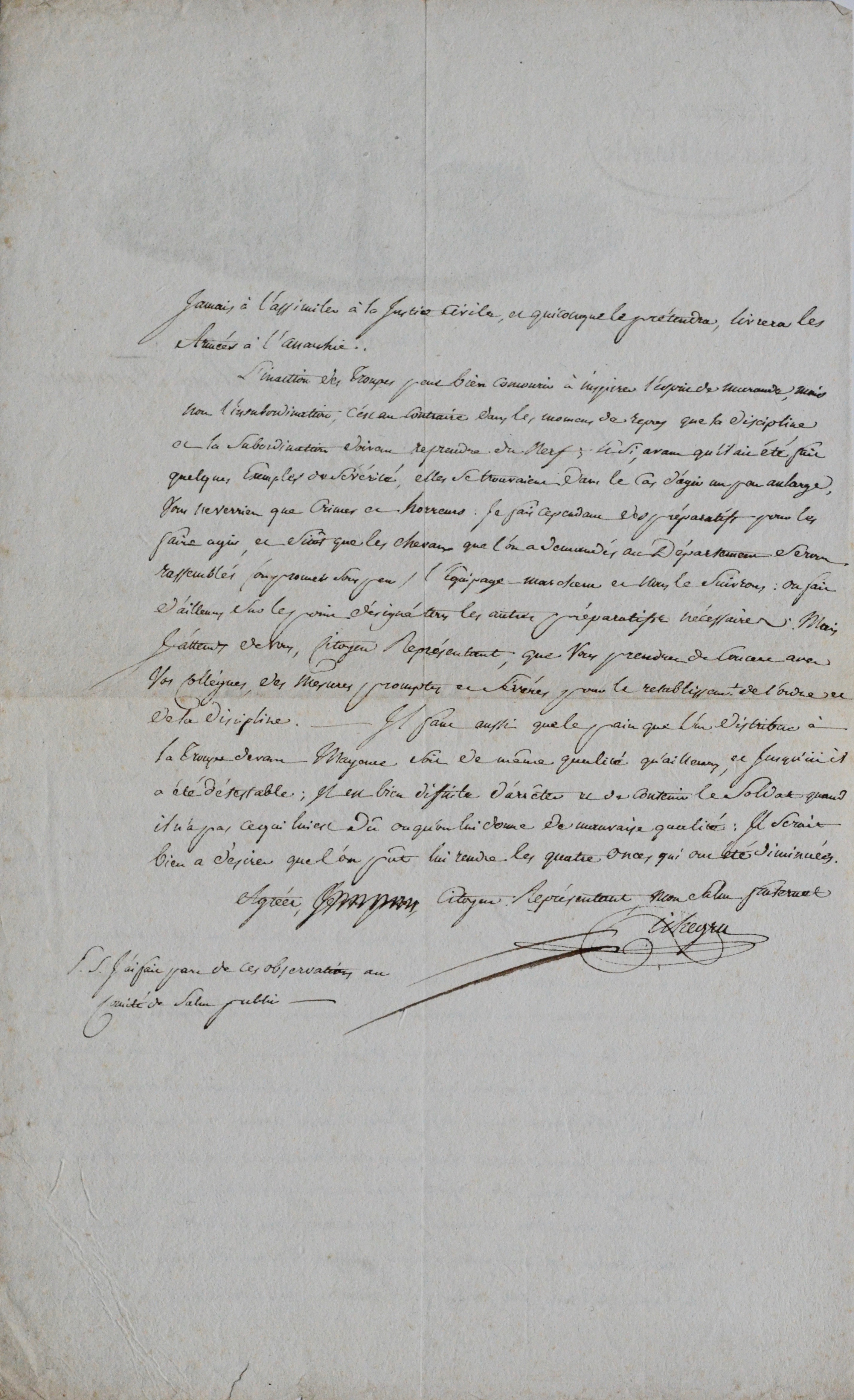 Pichegru ajoute en P.s. : "J'ai fait part de ces observations au Comité de Salut public".