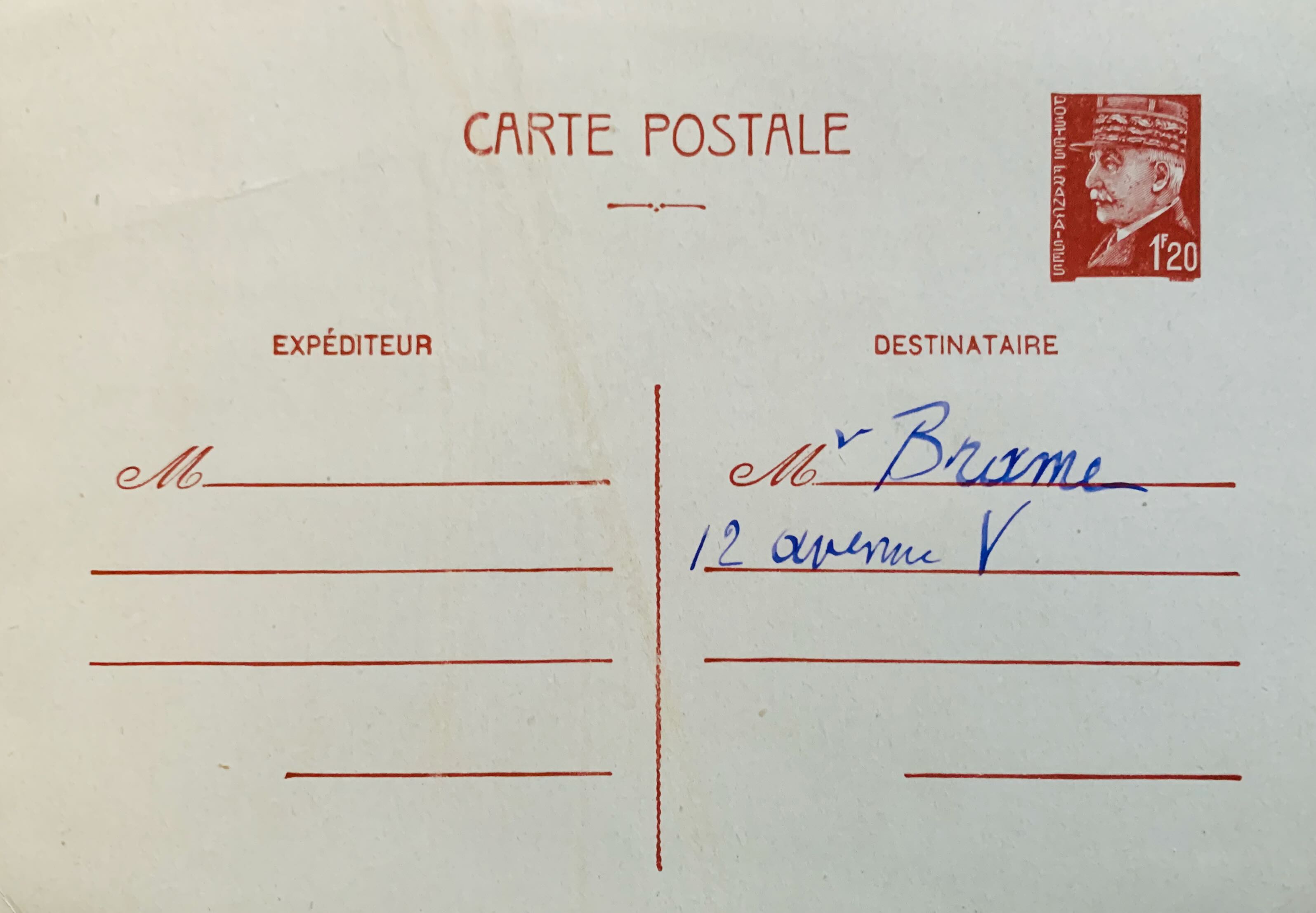 Au dos, timbre imprimé à l'effigie du maréchal Pétain.